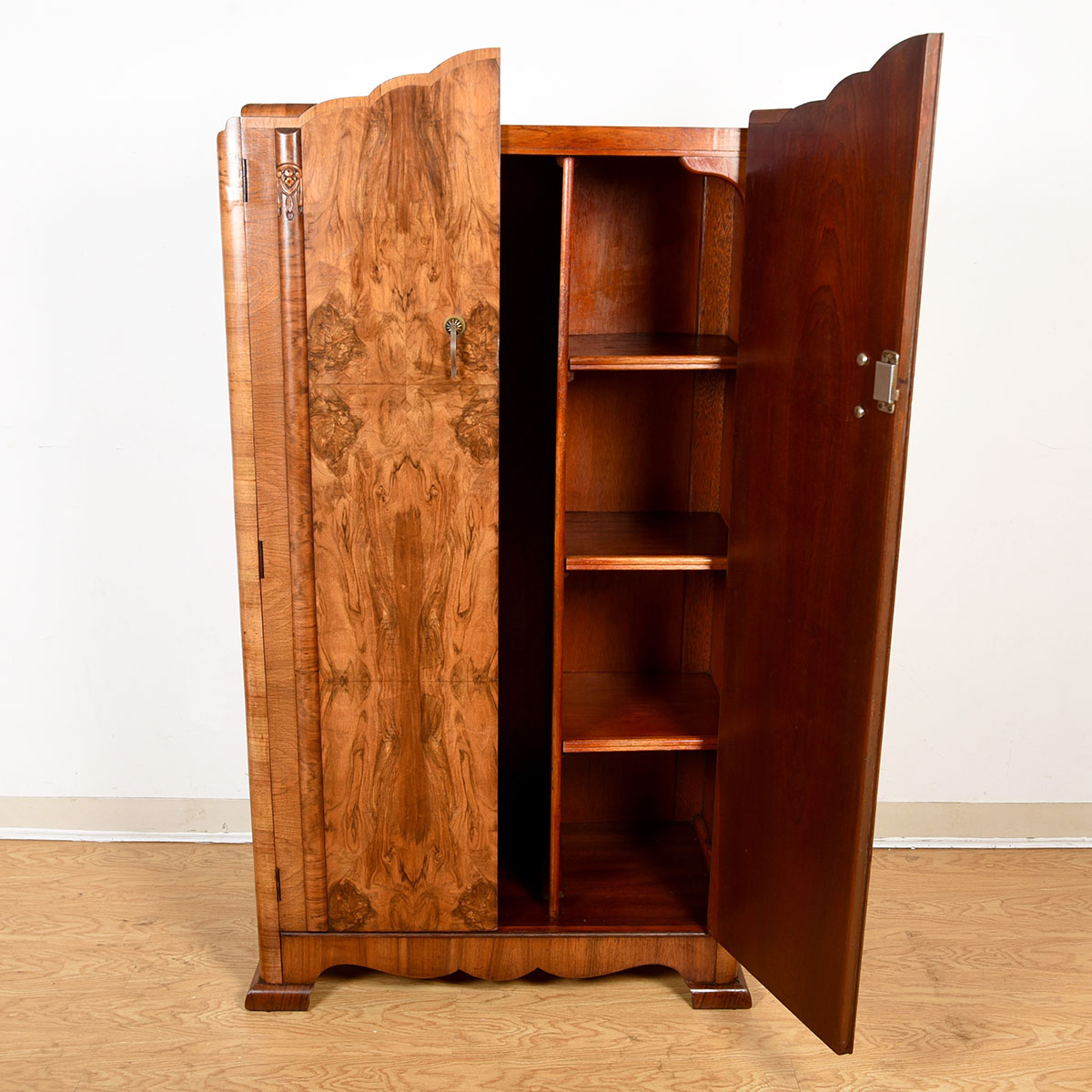 - Beautiful, Old World armoire, circa 1930s, featuring burled wood grain on doors