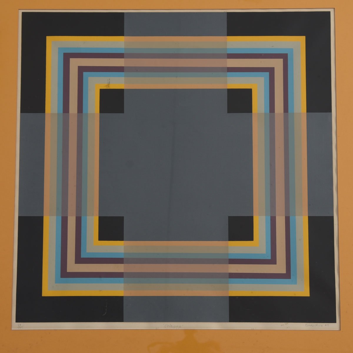Print artwork by Brian Rice, British abstract artist associated with the mid century Pop Art movement whose primary body of work includes non-representational screen prints.