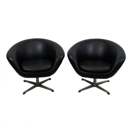 Classic Pair of Black Overman Swedish Pod Swivel Chairs