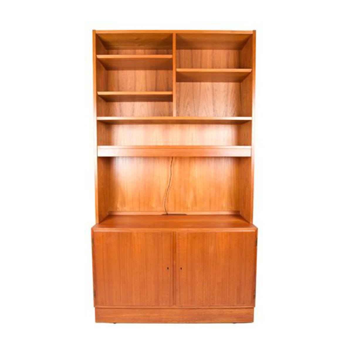 Compact 2-Piece Danish Teak (42.5″) Media / Lighted Display / Locking Storage Cabinet
