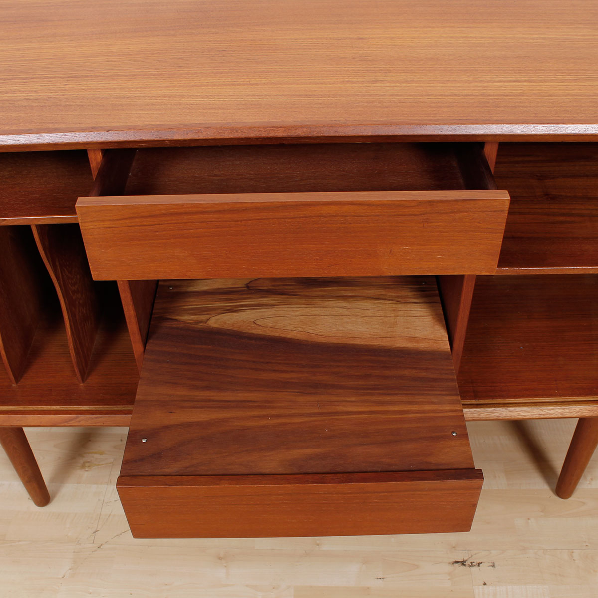 A Very Functional & Compact Slim Lined Danish Modern Media Cabinet Storage Piece. Developed Specifically to Hold Media Equipment, But Equally Well Suited w/ Its Excellent Grain to Impress Your Friends & Just Simple Good Versatile Storage…..