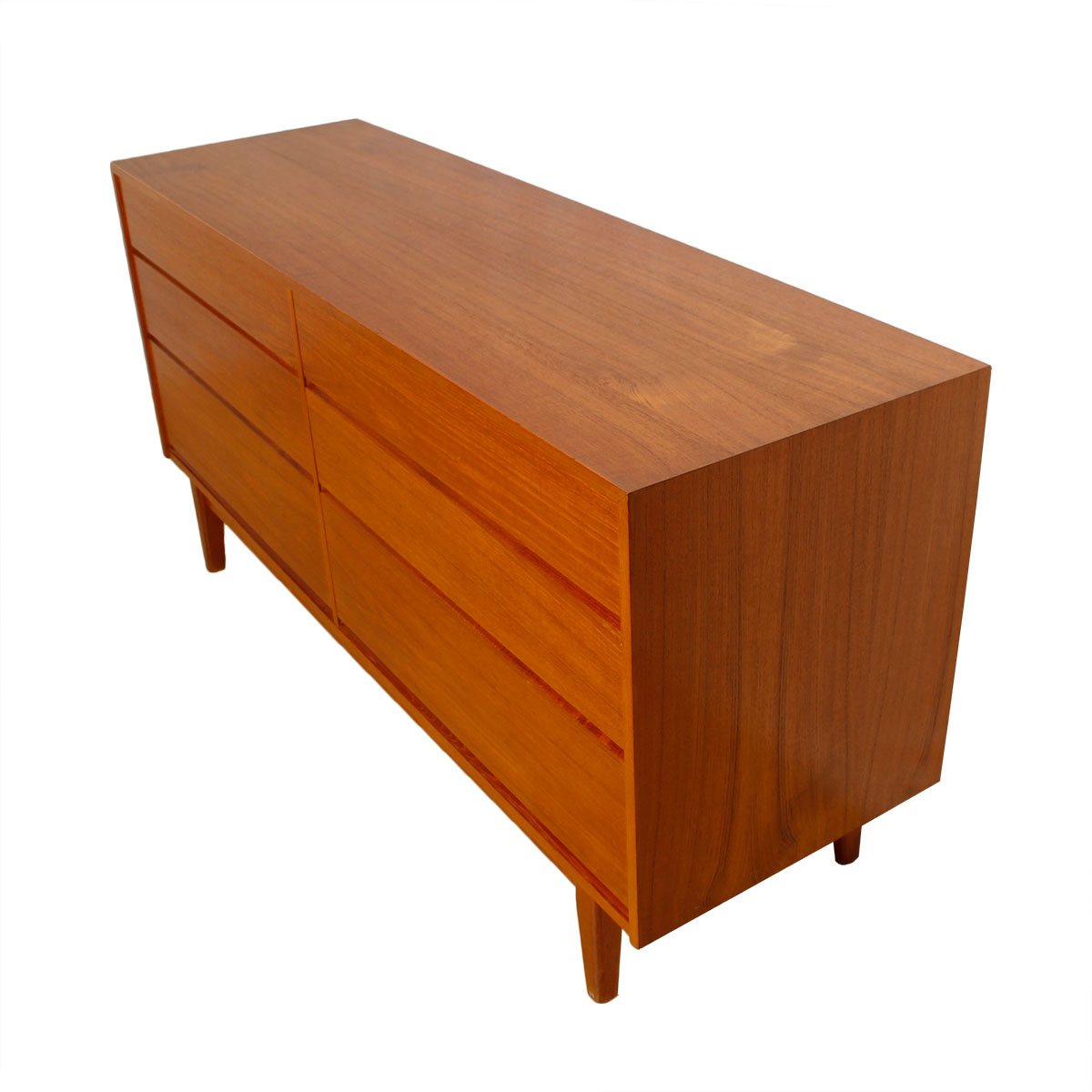 Six dresser teak dresser is minimalist and would fit into many dècors. A piece like this relies on the beauty and warmth of the wood, both superlative in this instance. Lots of storage in this highly functional piece.
