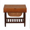 The basket is in excellent condition; these are usually damaged or lost altogether over time. A slatted shelf below completes the extensive functionality of this piece. Use it as a side table when not in active use.