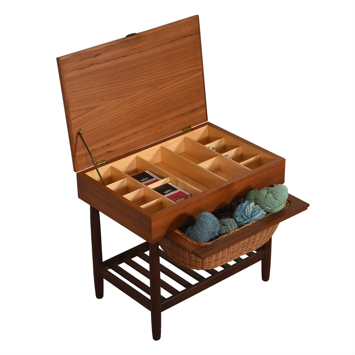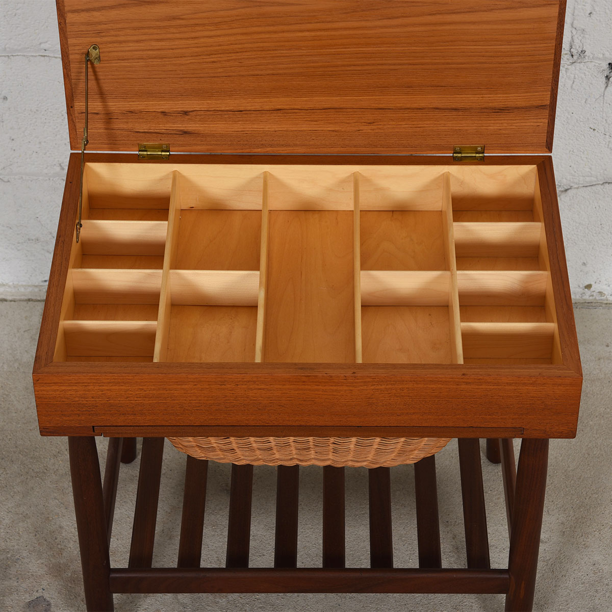 Compact Danish Teak Sewing Organizer With Dual Opening Drawer