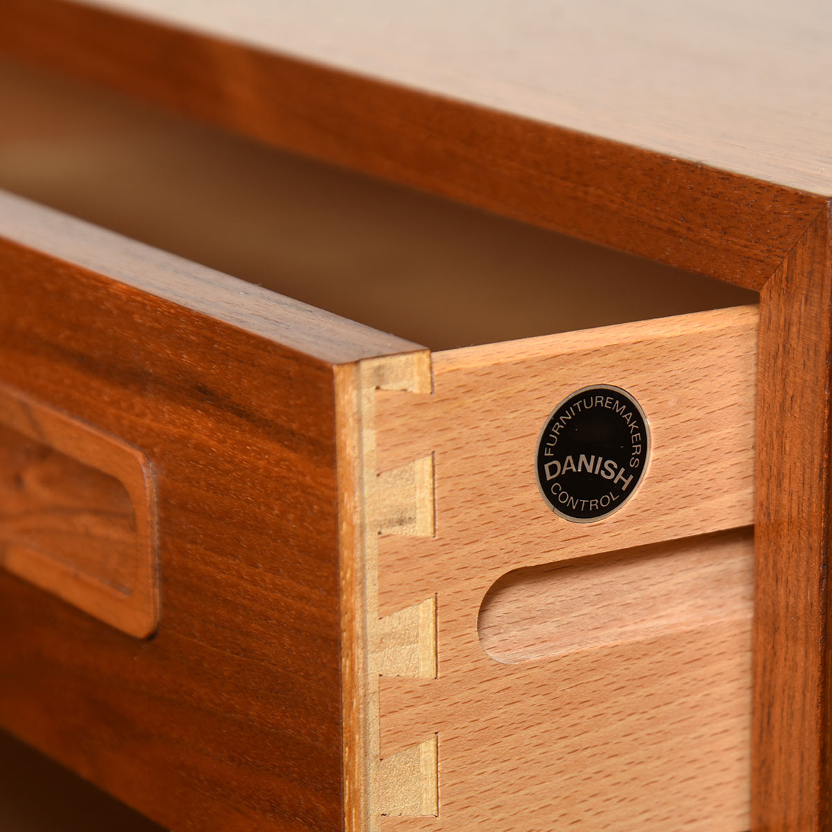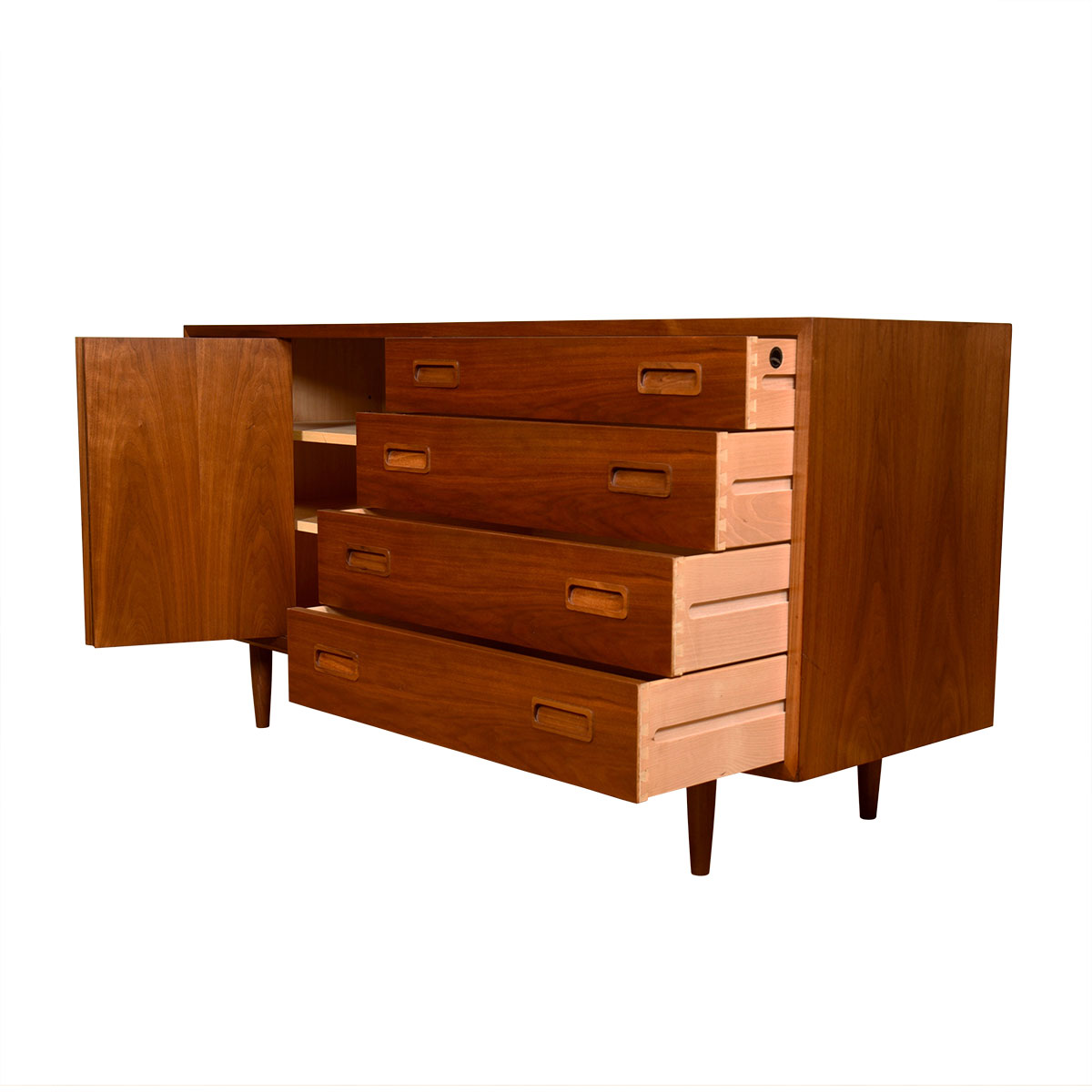 Use this beautiful and functional Danish Modern teak cabinet in your family room as a media cabinet, dining room as a sideboard, or in your office.