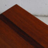 This sporty little table will fit nicely into that spot where you need just enough surface space to hold a small lamp, book and coffee cup. It has interesting details that make it more than just another accent table. It is a celebration of the three woods that define Danish Modern furniture from the middle of the last century. The legs are sturdy and the construction is solid on this little beauty.