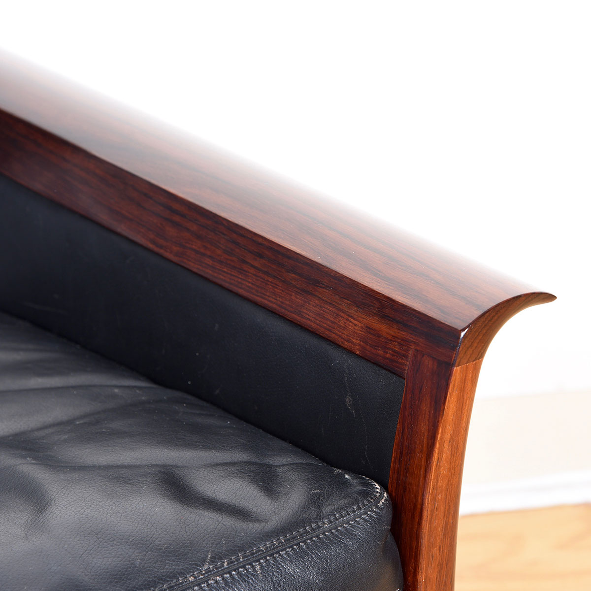 - Rosewood frame with original Black Leather upholstery and cushions
