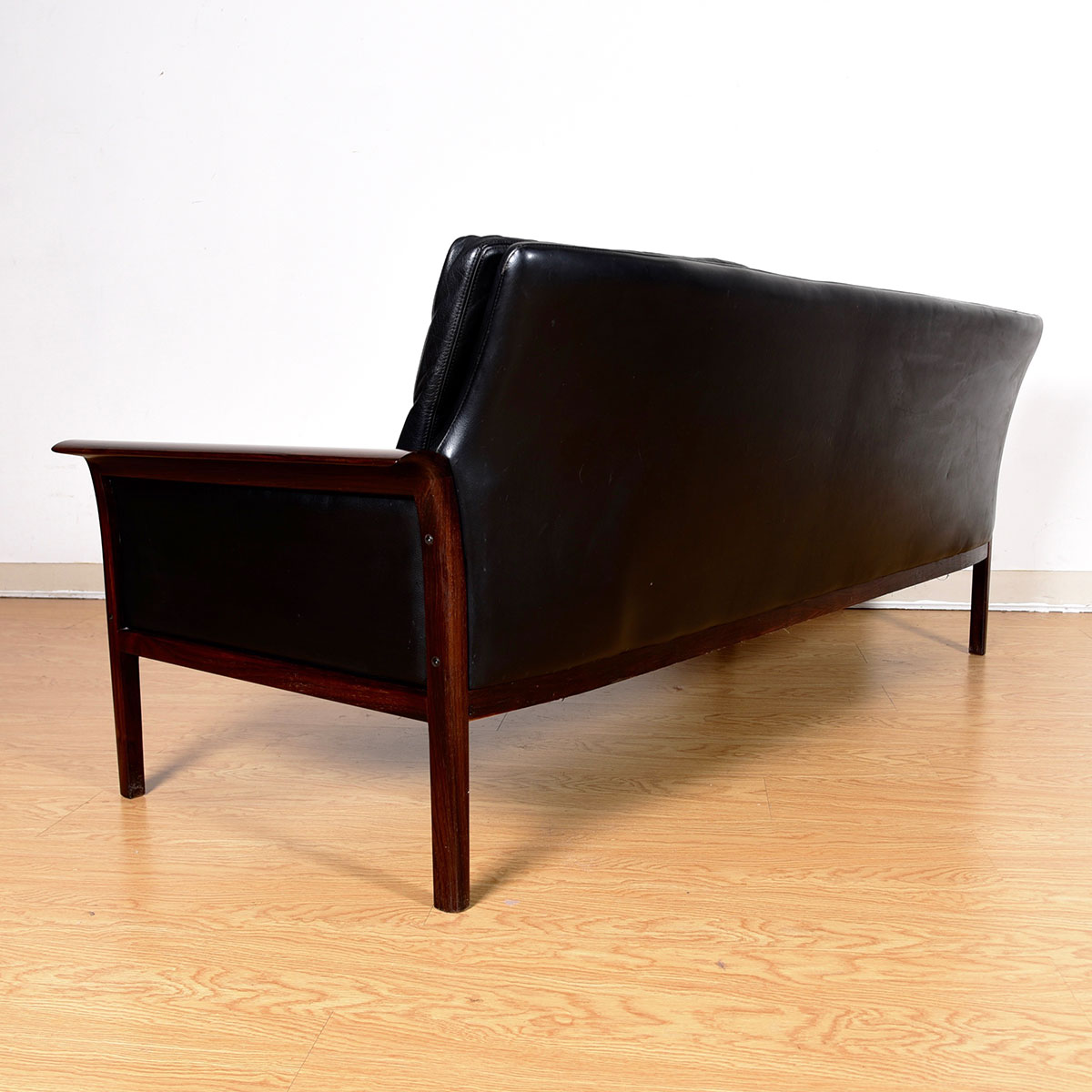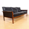 Compact Rosewood Black Leather Sofa by Hans Olsen