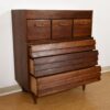 Compact Walnut Mid Century Slatted Front Tall Chest of Drawers / Dresser.