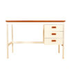 - Produced in white with a teak top and teak accents, it has three drawers on the right of the kneehole.