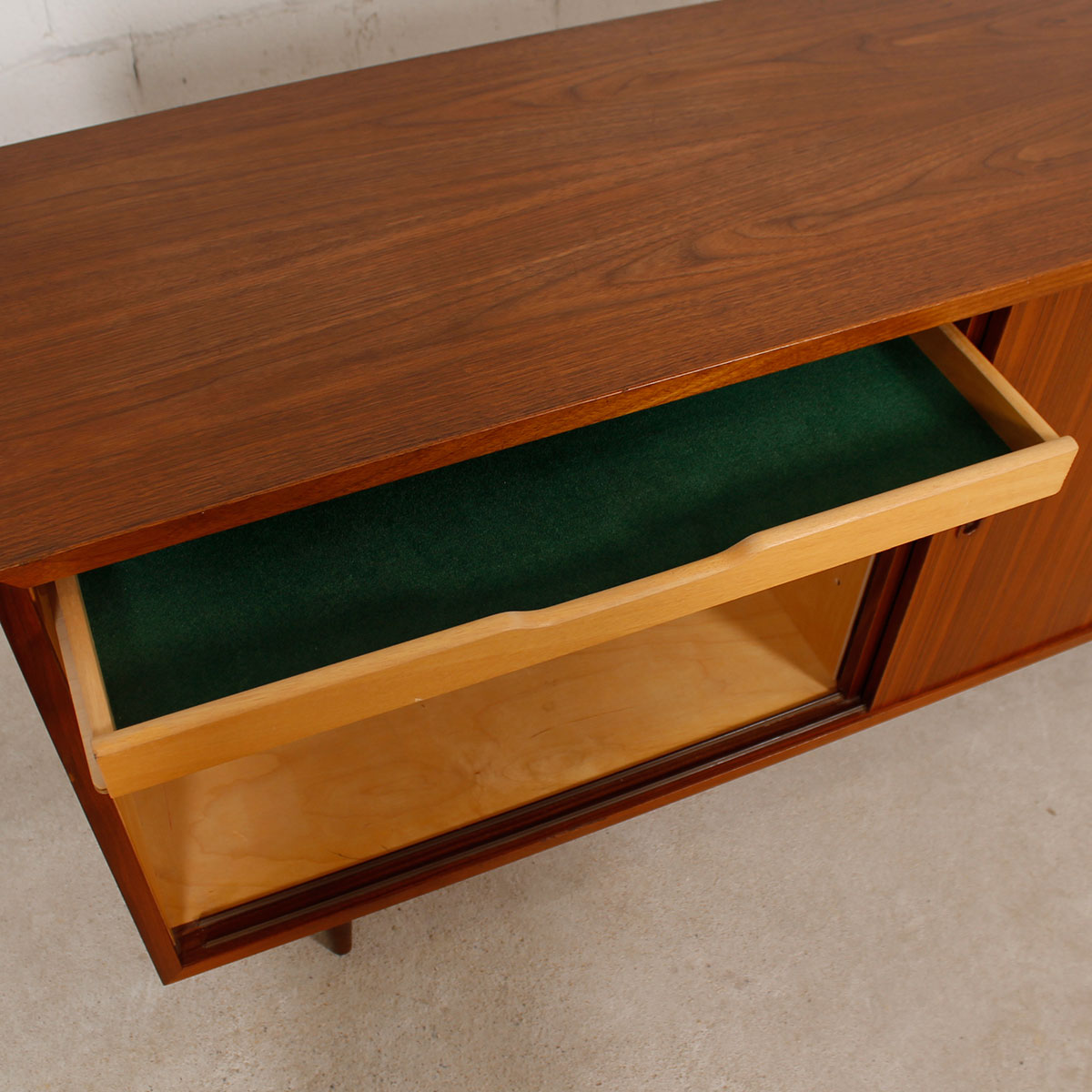 From Denmark, Comes This Compact Sideboard w/ 3 Adjustable Shelves, And A Shallow Felt Lined Drawer.