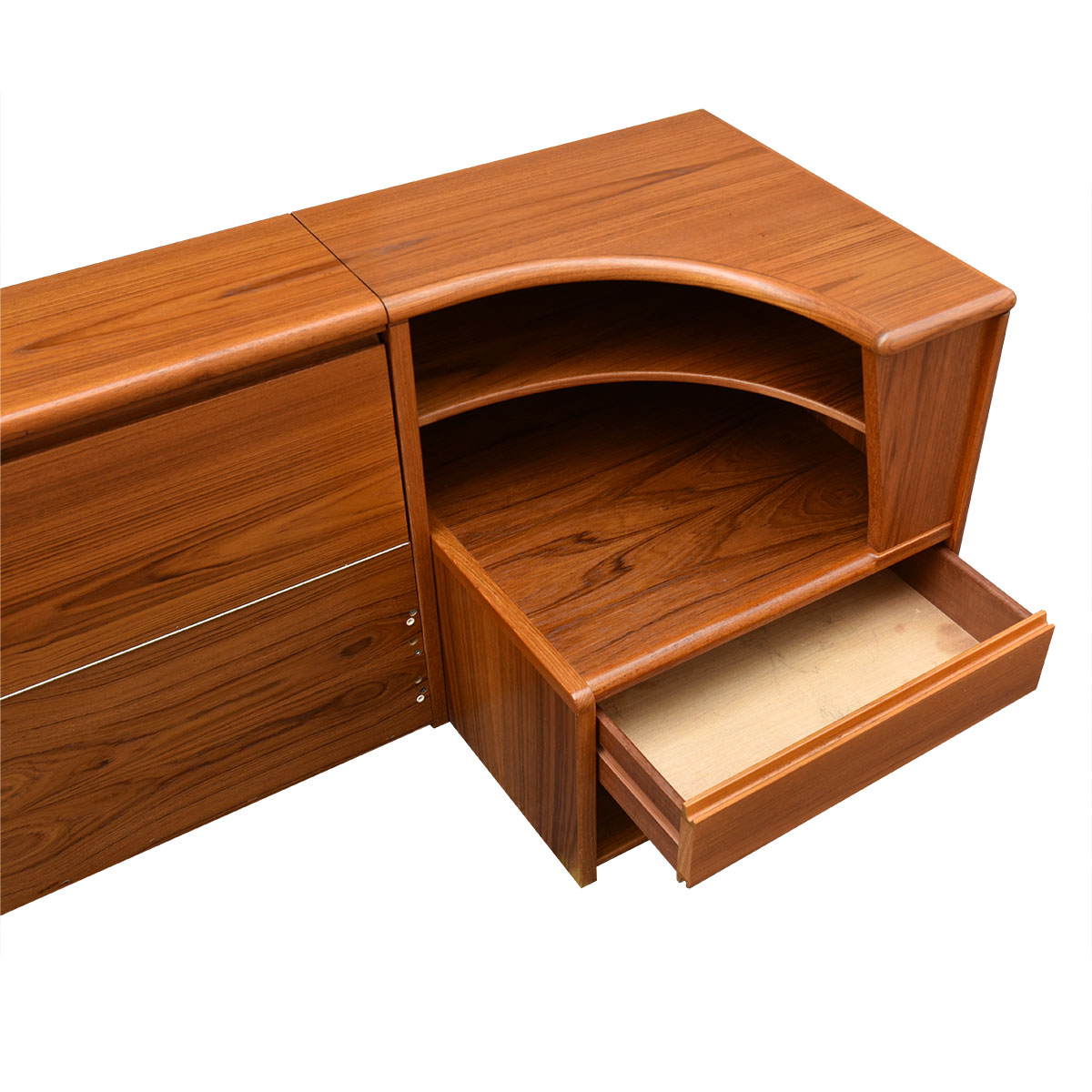 To arrange purchase or for more information about the Curvaceous Danish Teak Queen Bed w: Attached Nightstands + Headboard Storage please call us at 202.882.1648 or email us at info@modernmobler.com