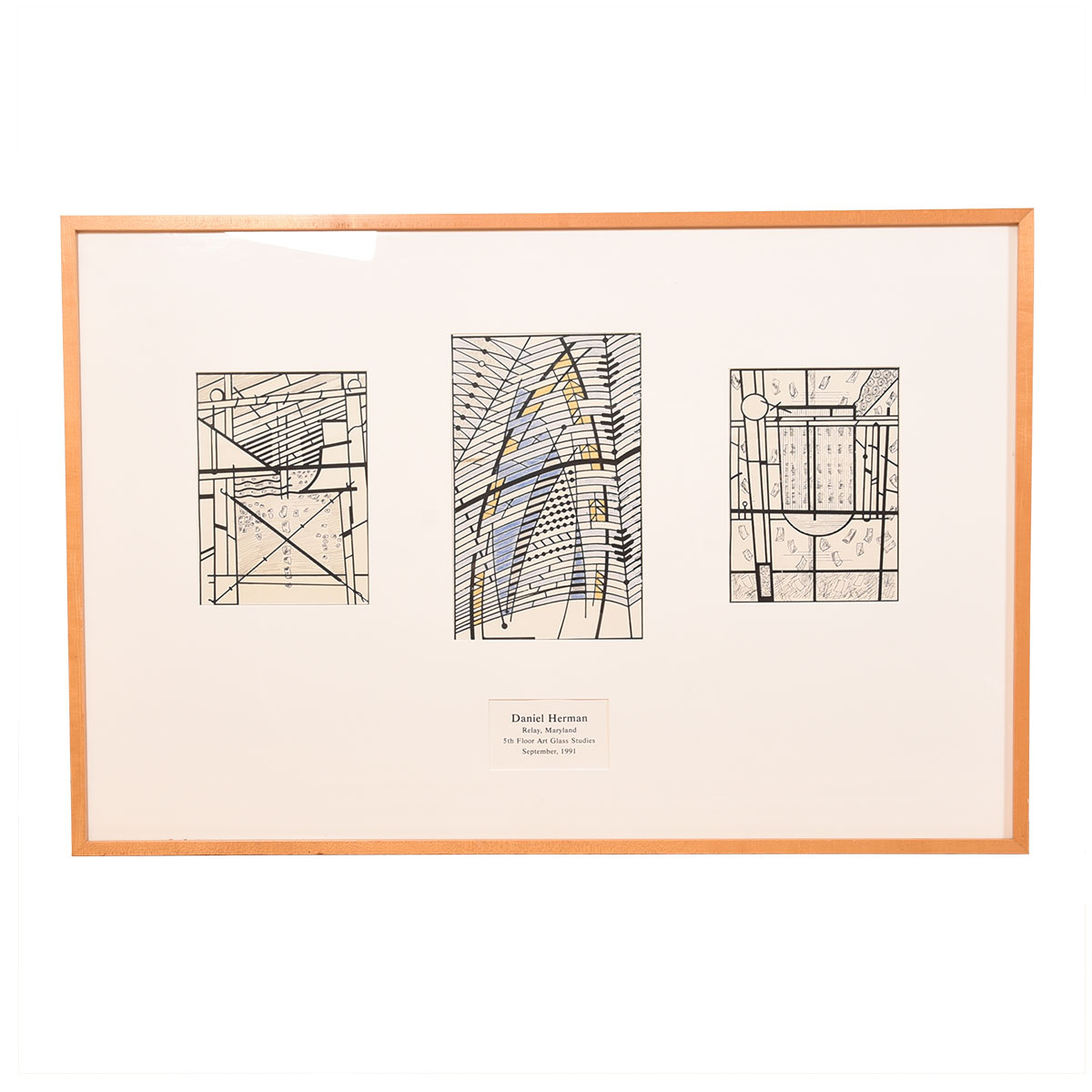 Interesting series of 3 drawings for an art glass project with a architectural appearance.
