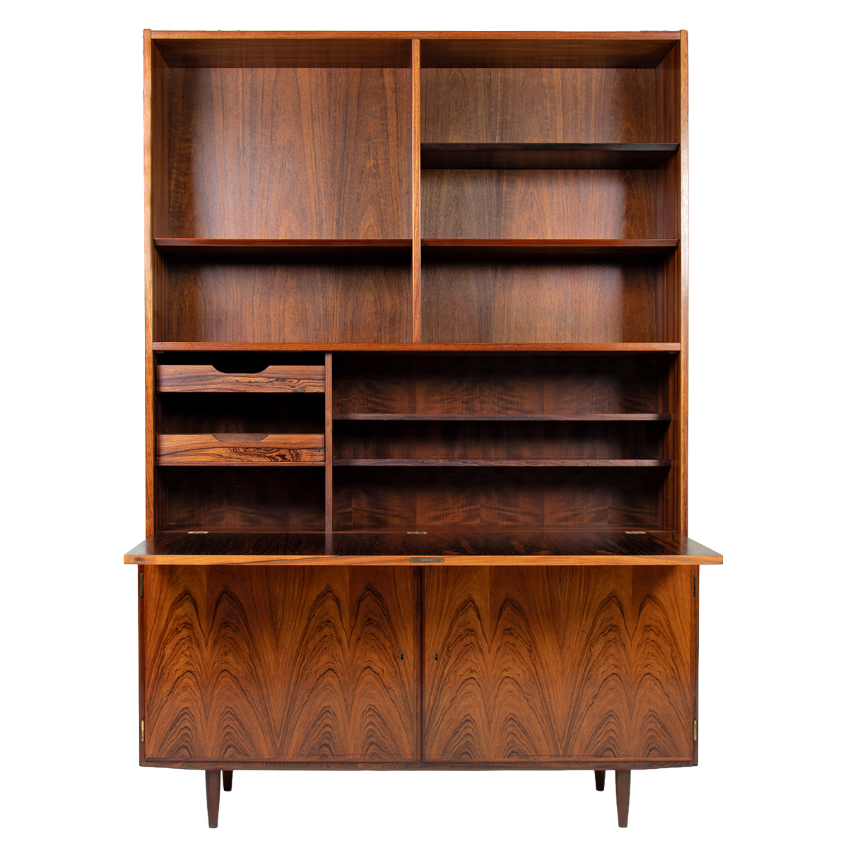 Danish 2-Piece Locking Secretary | Bar w. Bookcase Top in Brazilian Rosewood