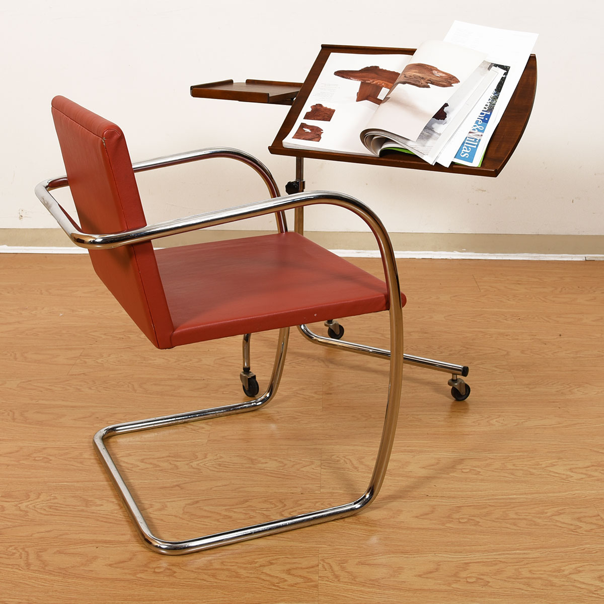 To arrange purchase or for more information about the Danish Mid Century Rolling Walnut Adjustable Music / TV Tray Stand please call us at 202.882.1648 or email us at info@modernmobler.com