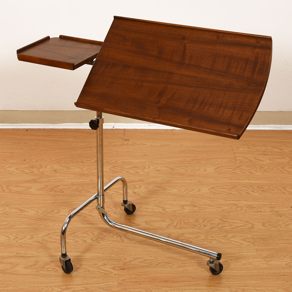 Rolling Danish Modern Walnut Adjustable Music / TV Tray Stand – Also Avail in Rosewood