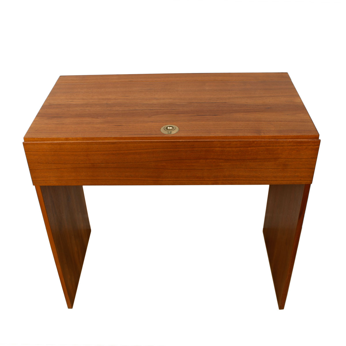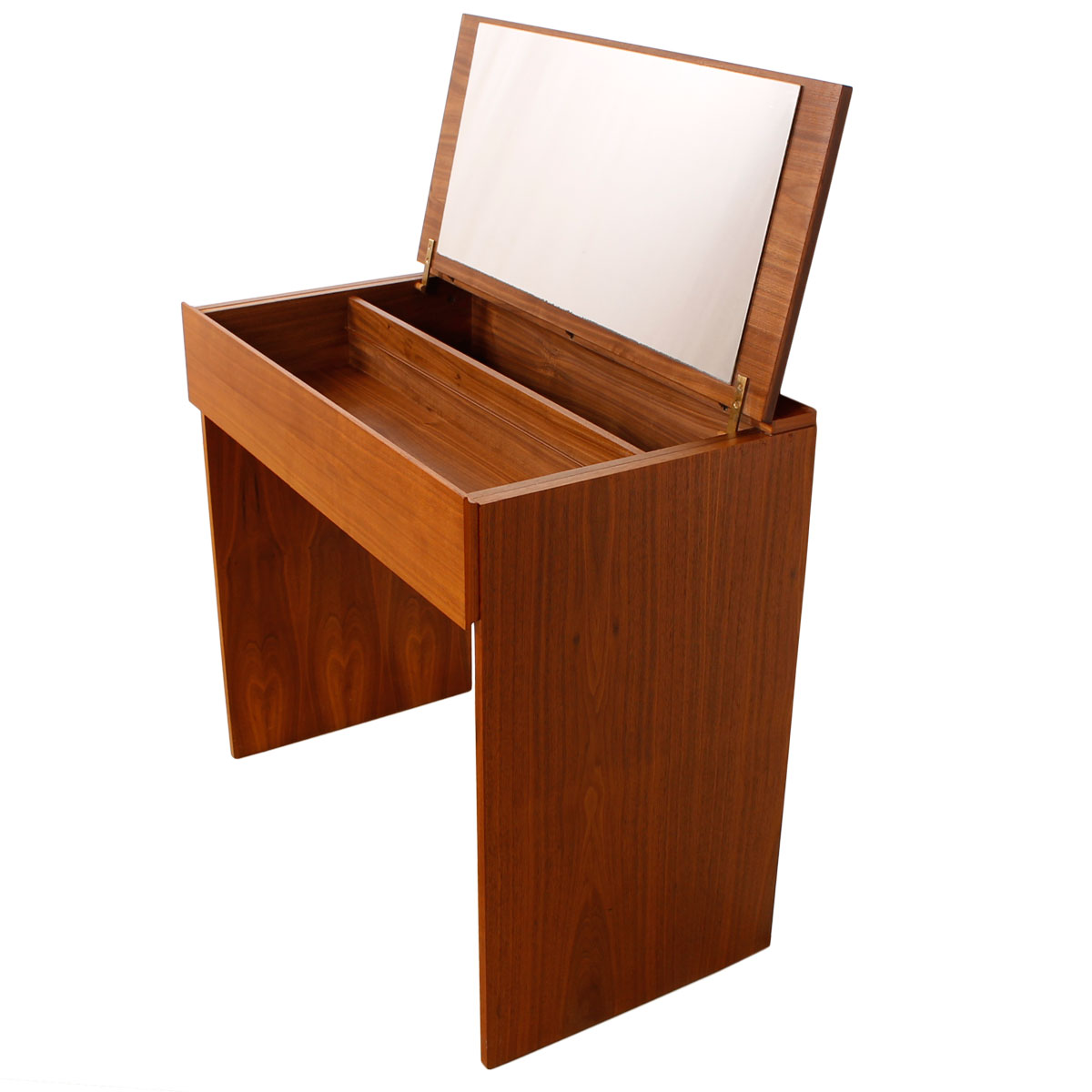 By Arne Wahl Iversen for Vinde Mobelfabrik, Denmark. Table Flips Open to Reveal a Vanity Mirrror & Storage Space.