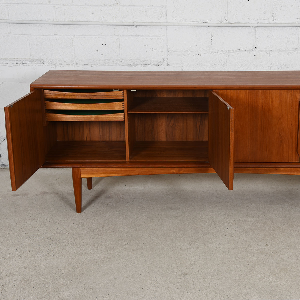 Danish Sculpted Pull Bernhard Pedersen & Son Teak Sideboard. All Shelves Are Adjustable.