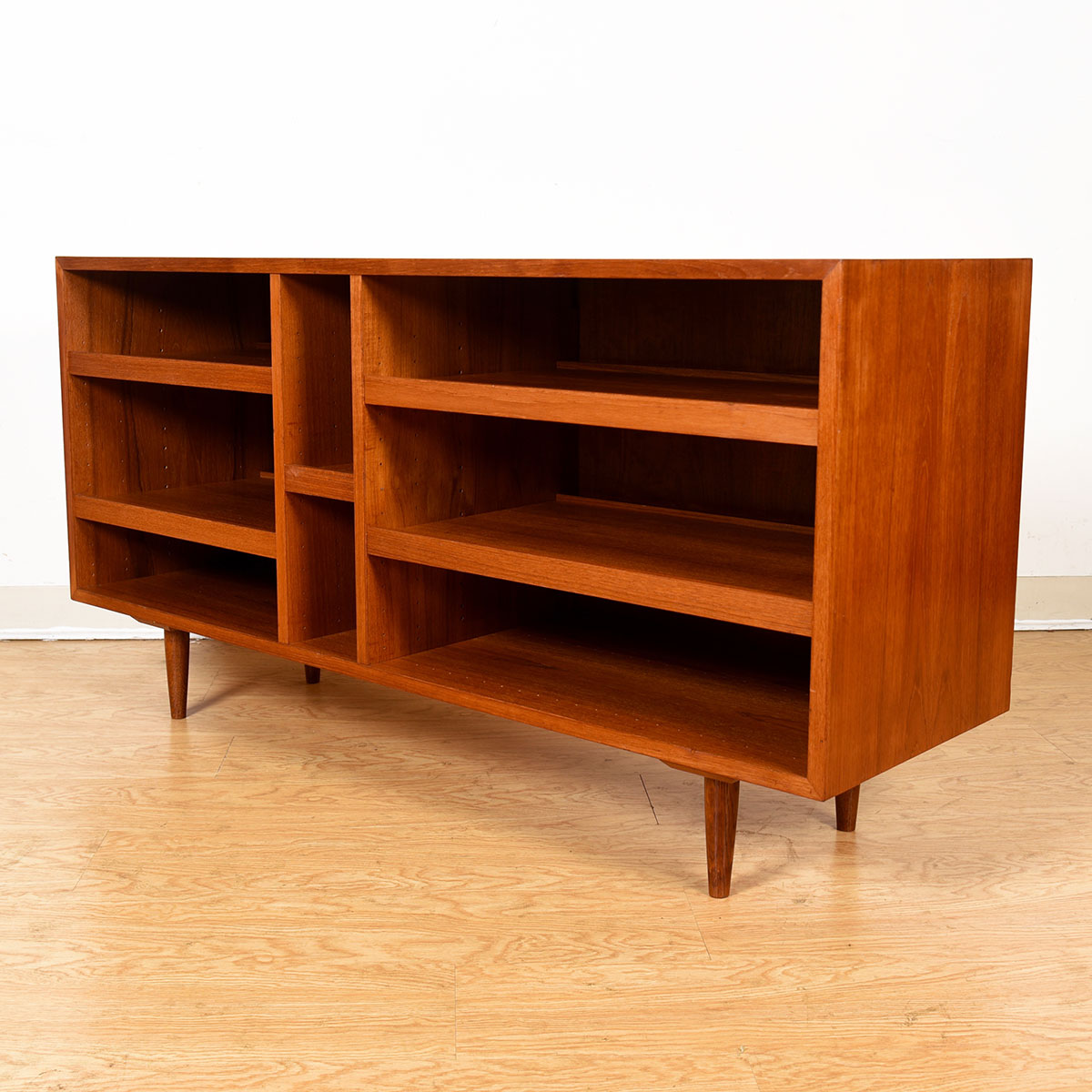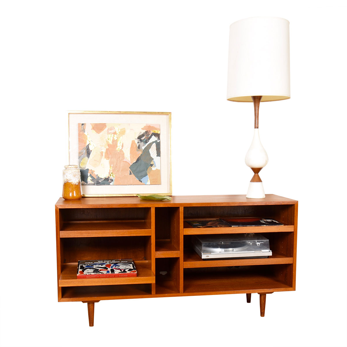 Danish Modern Open Media Teak Cabinet w. 4 Pull-Out Shelves