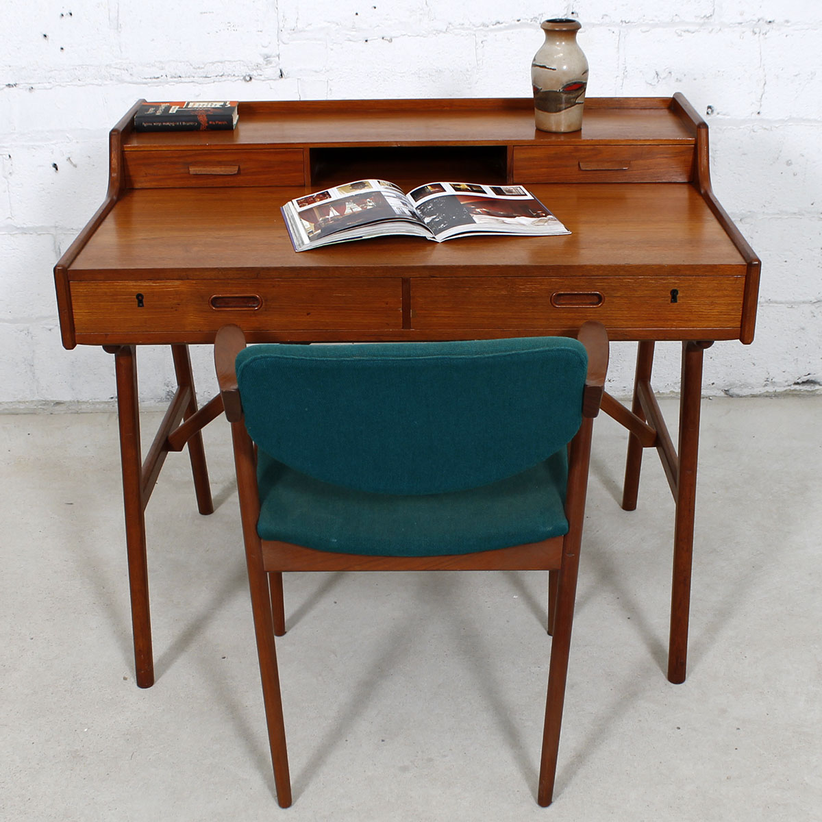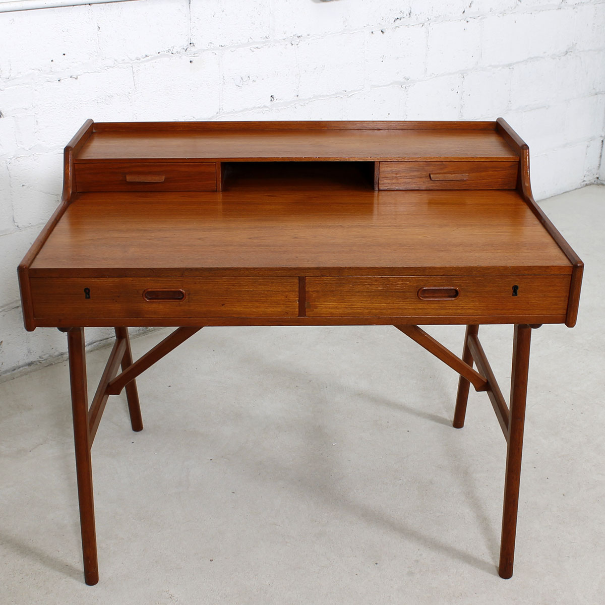 Arne Wahl Iversen Petite Danish Teak Writing Desk w/ Sculptural Legs
