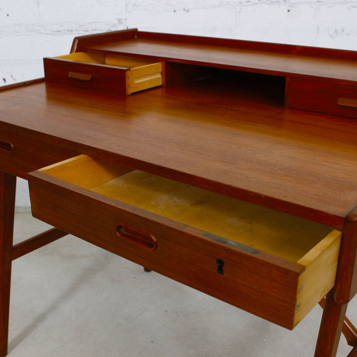 Highly Desirable Writing Desk By Arne Wahl Iversen for Vinde Mobelfabrik, Denmark. Fully Finished On All Sides So It Can Conveniently Be Placed In The Middle Of A Room.