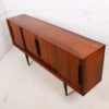 For Danish Modern fans here is an exceptional long and elegant Rosewood Sideboard. With 4 Doors revealing both drawers and adjustable shelves offering ample storage.