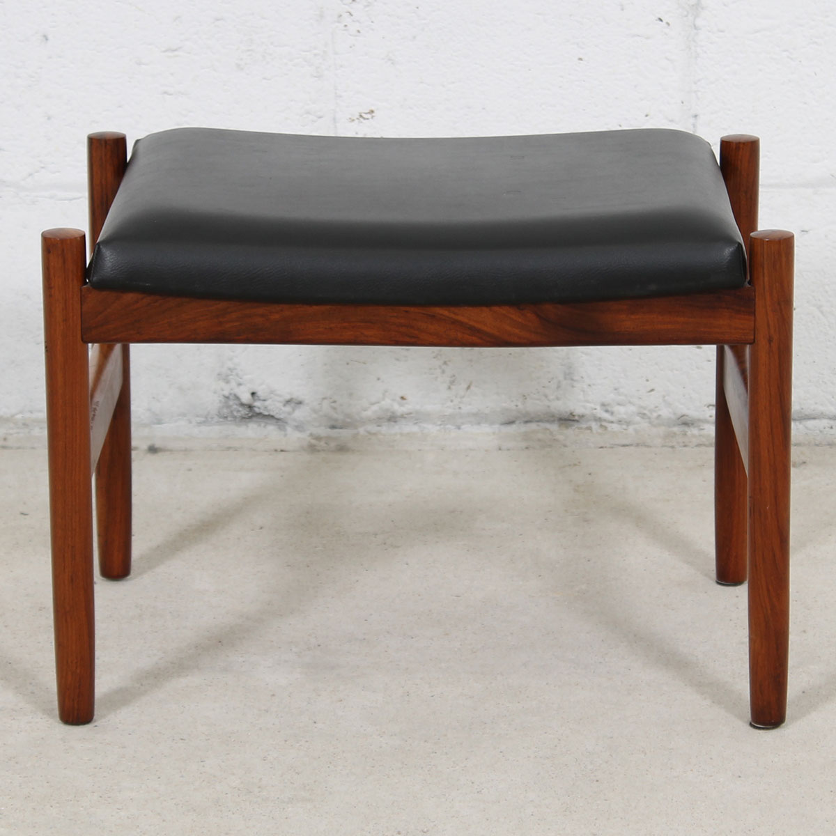 Danish Modern Rosewood Ottoman / Stool with Black Upholstery
