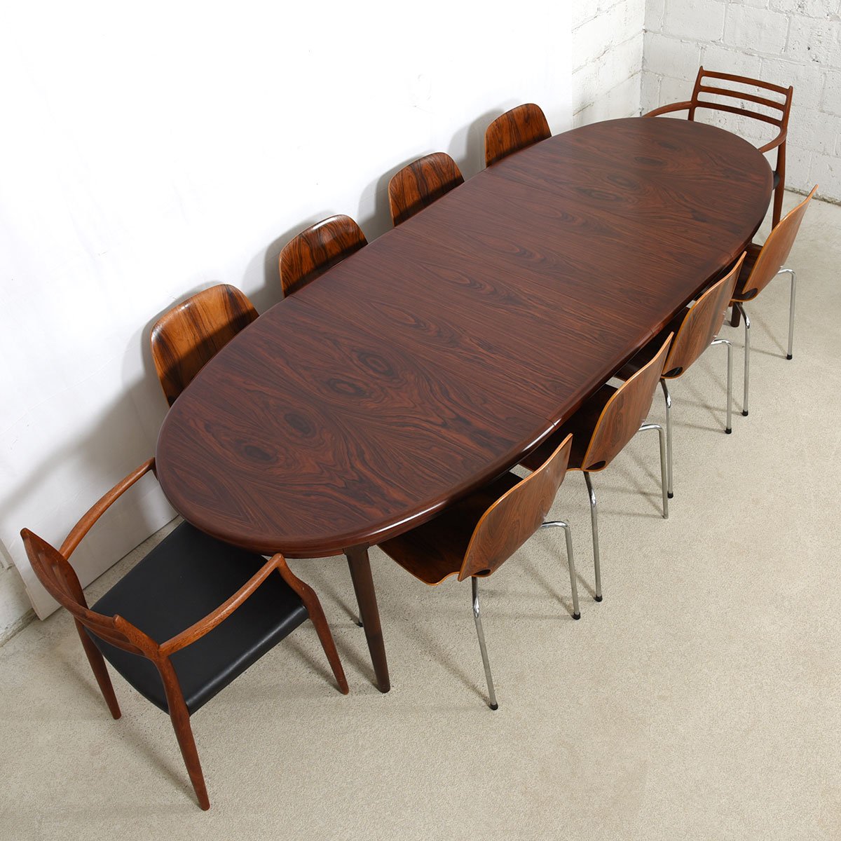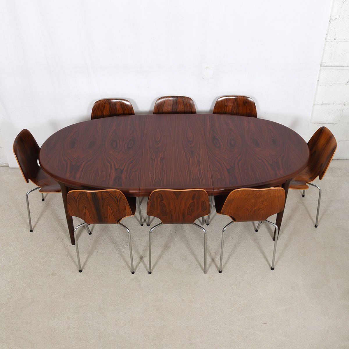 - A Danish Modern Rosewood Oval Expanding Dining Table