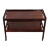 - Lustrous rosewood is showcased on this Danish Modern bar cart featuring two shelves supported in a squared frame
