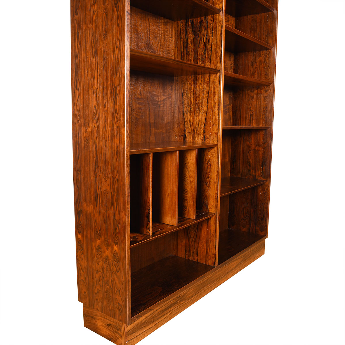 Classic Danish Modern Rosewood Double Bookcase. Superior Quality + The Added Attraction of Shelves w/ Beveled Front Edges.