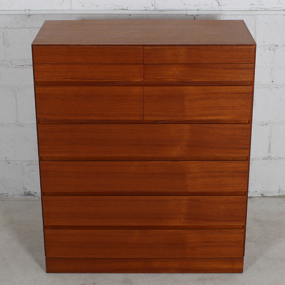 4 Shallow Top ‘Split’ Drawers, 2 Deeper Mid-Sized Drawers & 4 Long and Wide Bottom Drawers. By Arne Wahl Iversen for Vinde Mobelfabrik, Denmark.