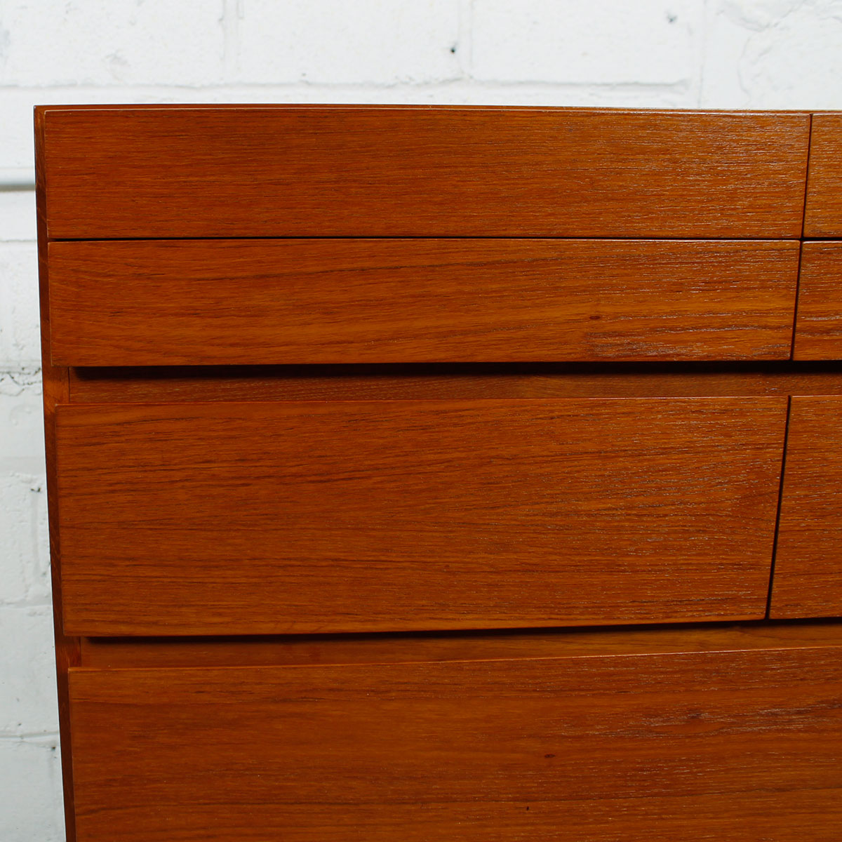 4 Shallow Top ‘Split’ Drawers, 2 Deeper Mid-Sized Drawers & 4 Long and Wide Bottom Drawers. By Arne Wahl Iversen for Vinde Mobelfabrik, Denmark.