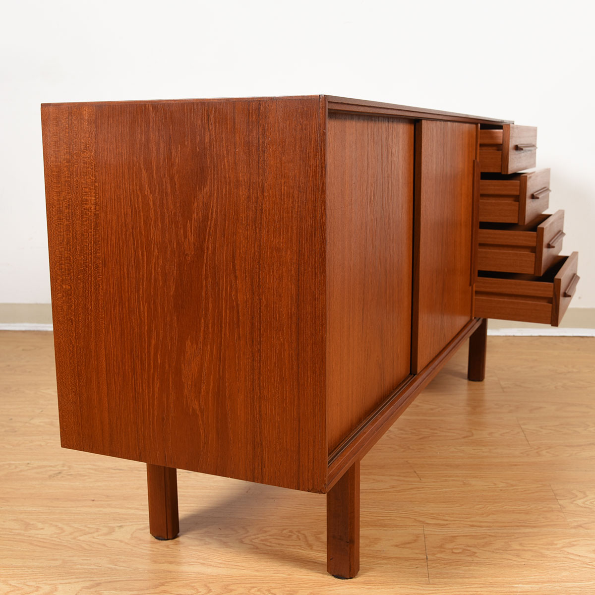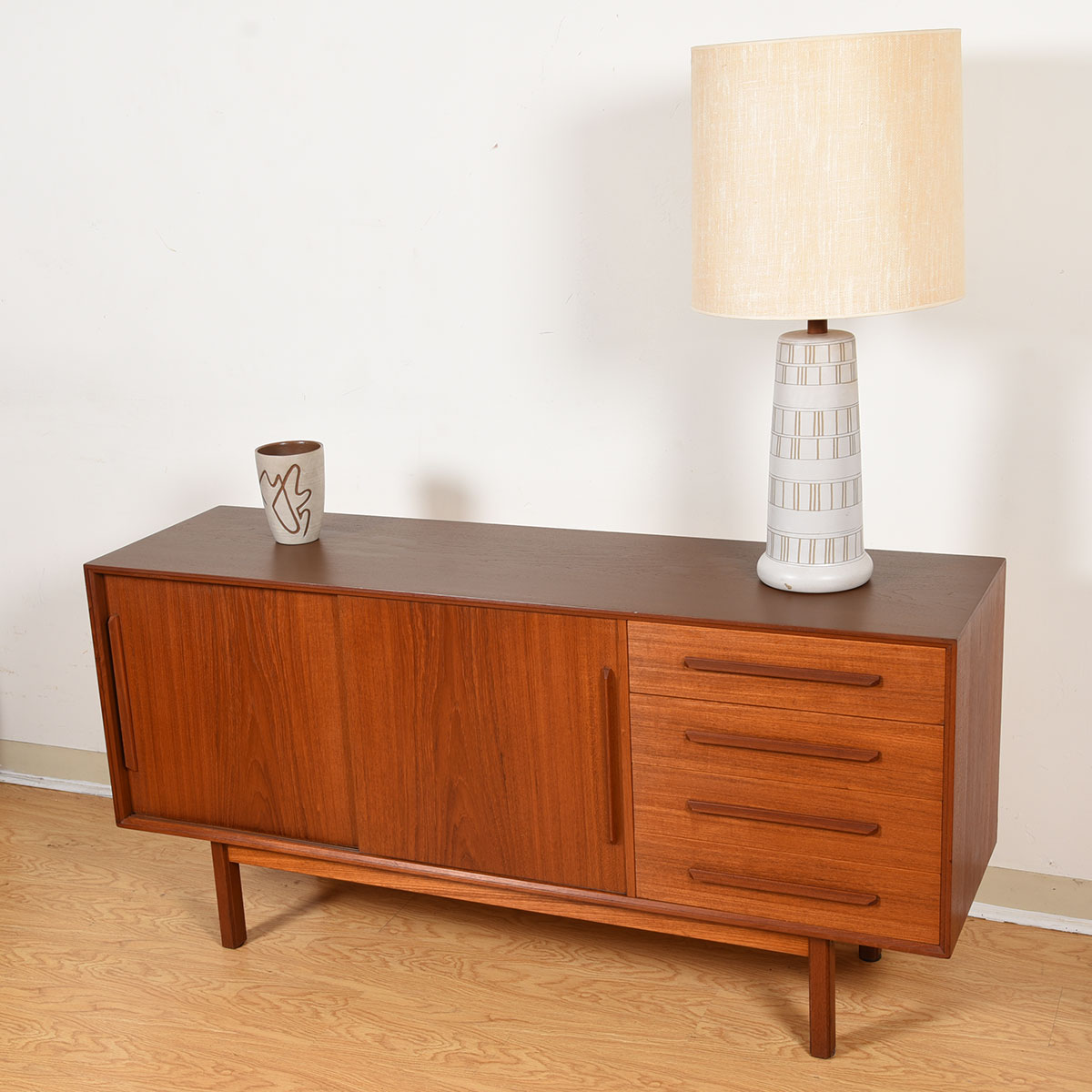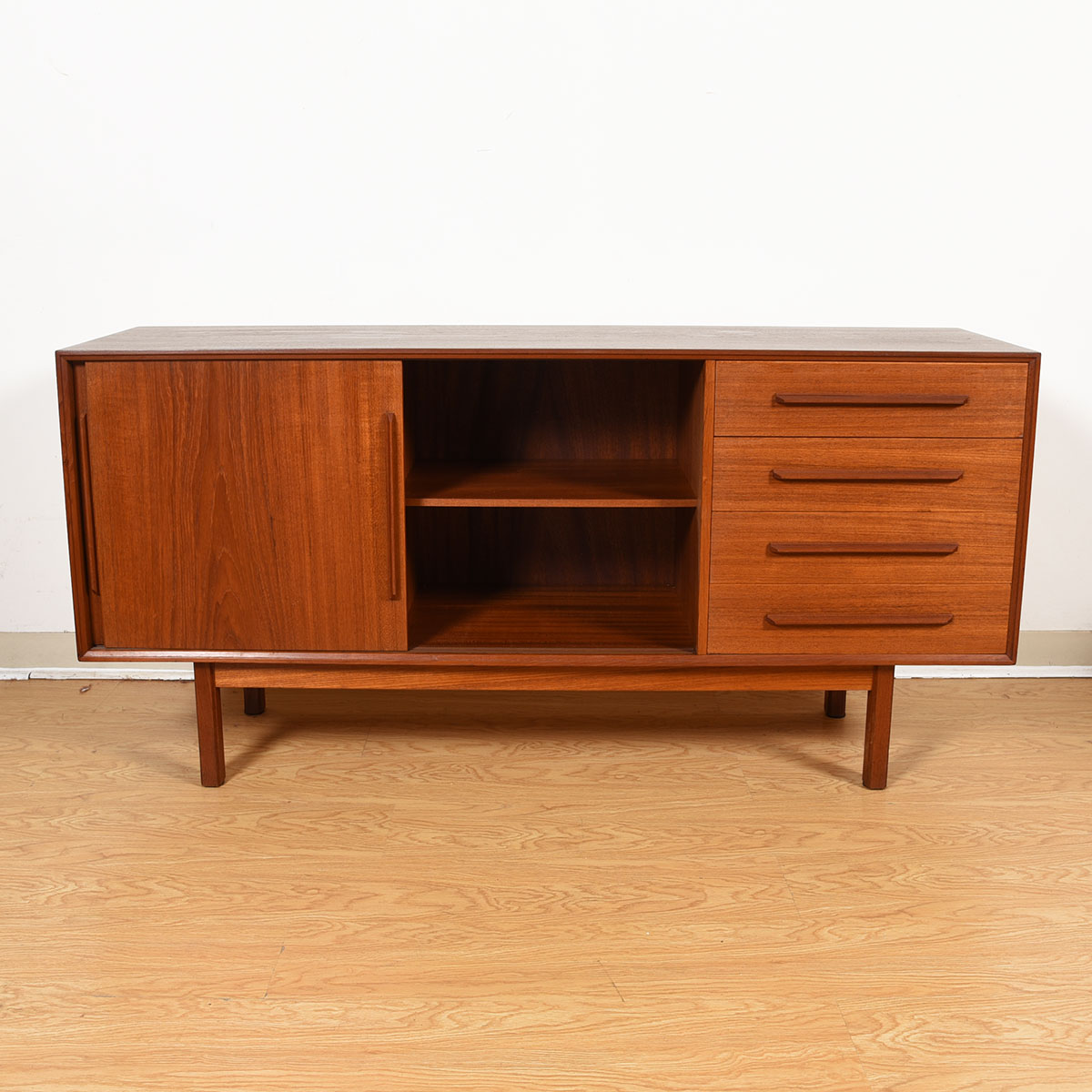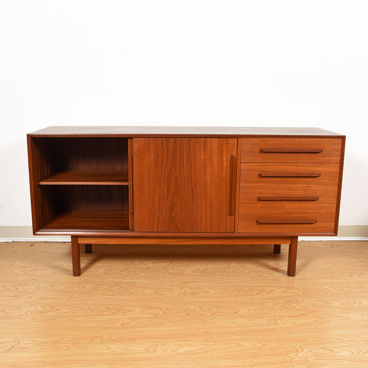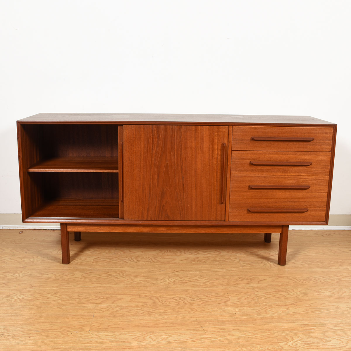 60″ Danish Modern Teak 2-Door / 4-Drawer Sideboard