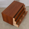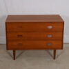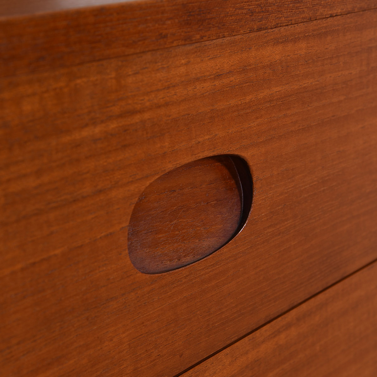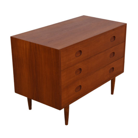 We are pleased to offer this Danish Modern 3-drawer chest in teak. It’s only adornment are the recessed oval pulls, two on each drawer. It offers spacious storage in a compact piece.