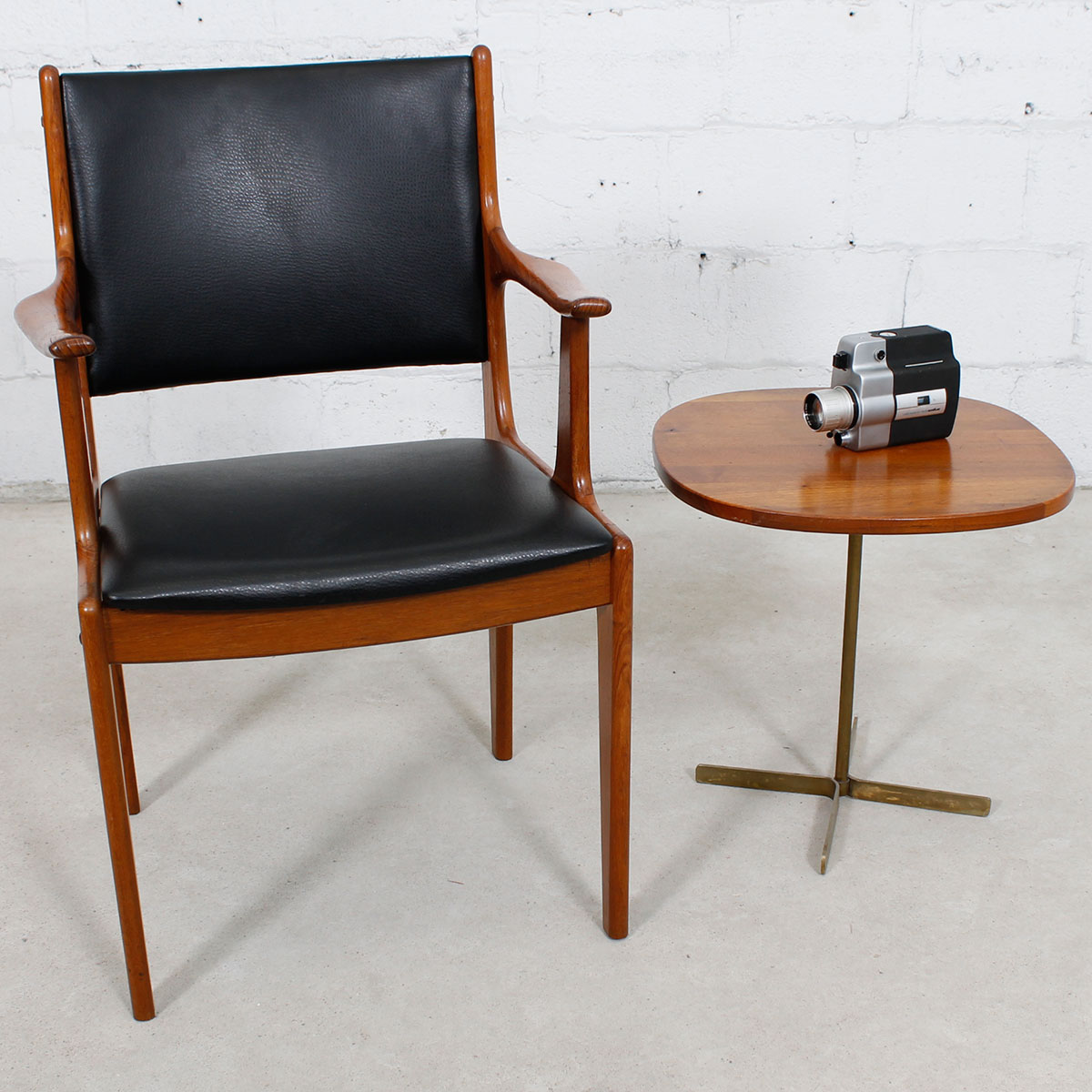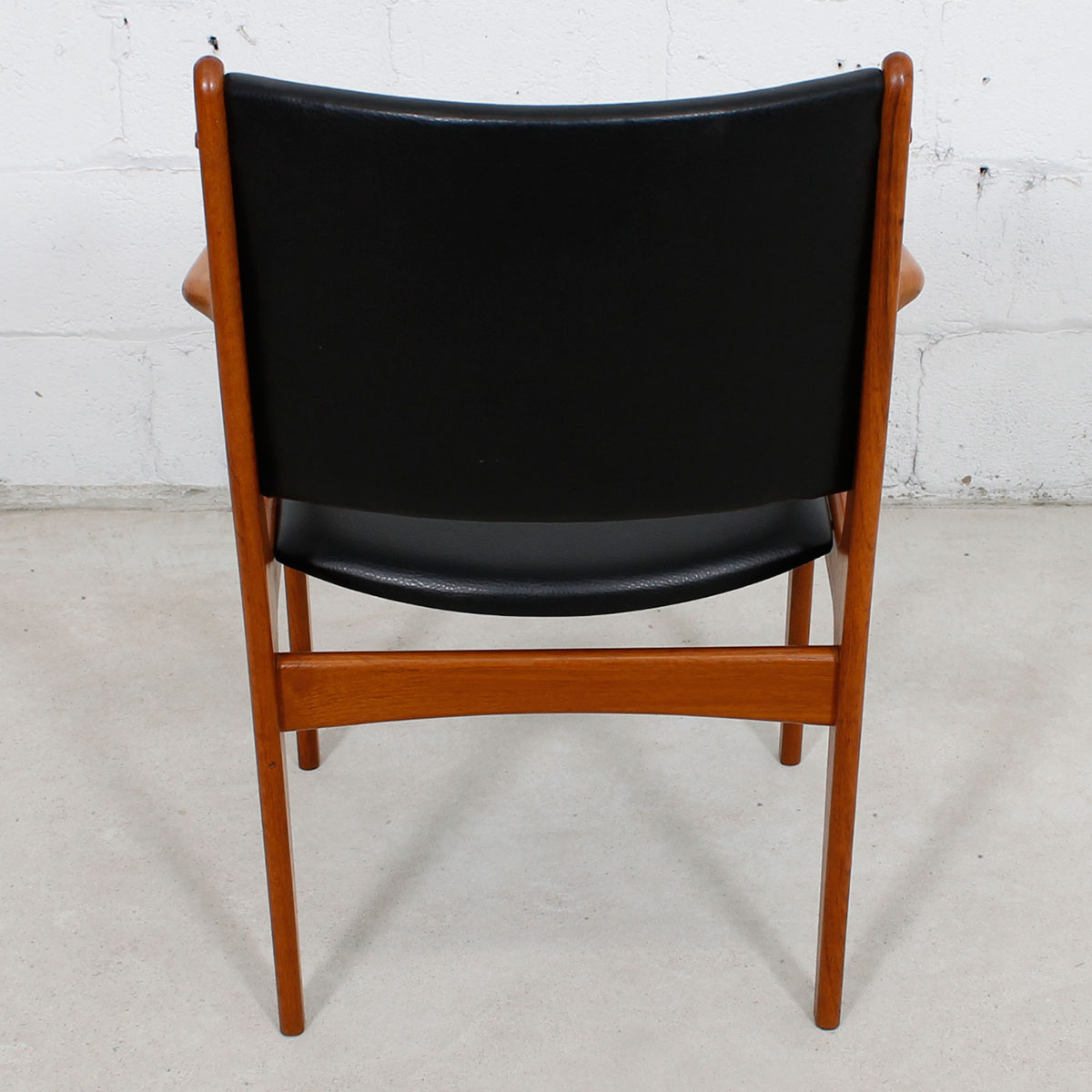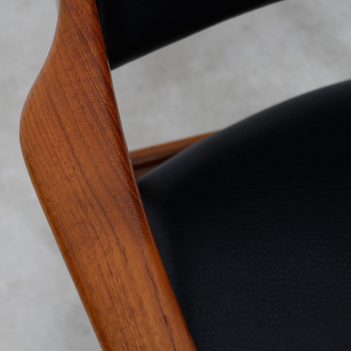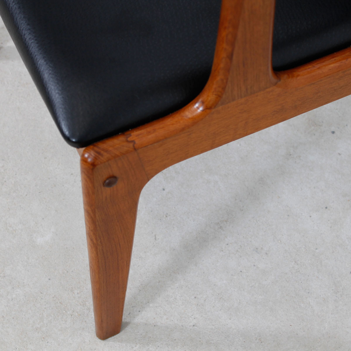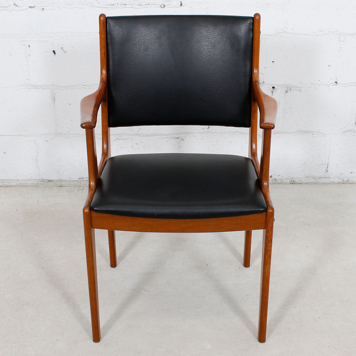 A Johannes Andersen for Uldum Mobelfabrik Danish Teak Arm Chair. In Warm Solid Teak. Upholstered In A High-End Black Leatherette.