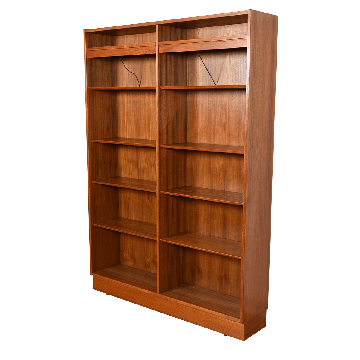 Lighted Danish Modern Teak Adjustable Shelf Bookcase