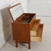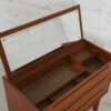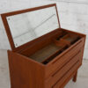 We are pleased to offer this lovely vanity or chest with mirror. The top lifts up to reveal a mirror and a drawer with compartments for small items such as cosmetics, jewelry or desk accessories. Compact size but provides good storage in a small space thanks to two additional spacious drawers.