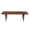 The table top has a raised lip edge and each squared end is finished with a strip of darker teak. This picks up the color of the legs which are also slightly darker and the shape of the tapered is gorgeous. Beautiful craftsmanship and materials make this coffee table a gem.