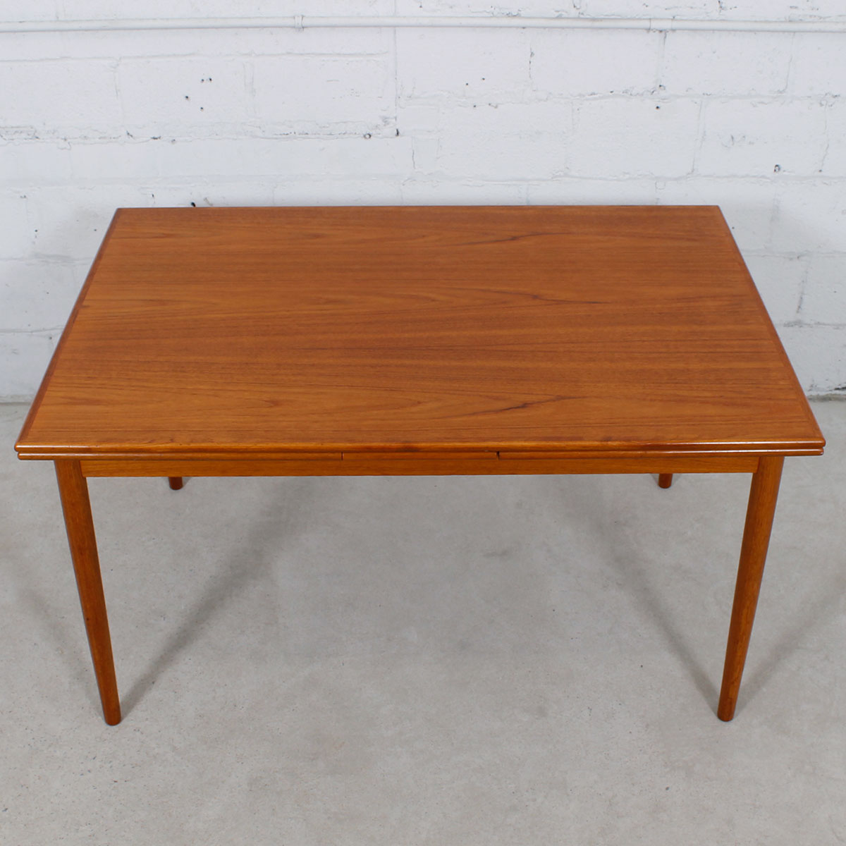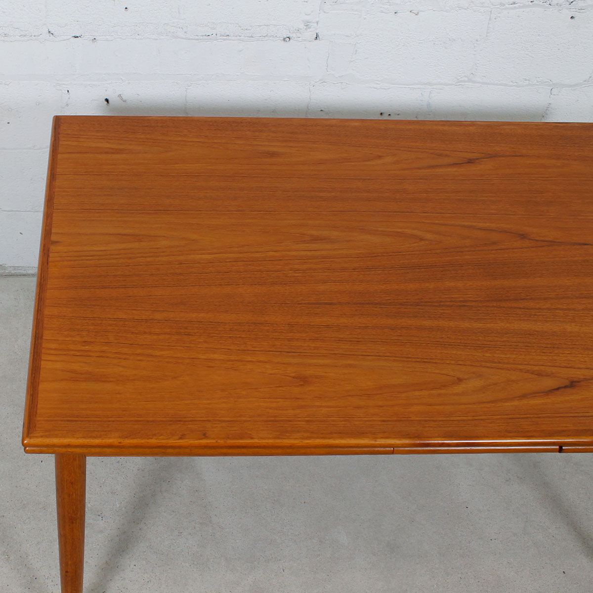 A Wonderful Mid-Sized Danish Teak Dining Table with Thick, Tapered Legs & a Beveled Edge Trim.