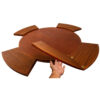 Four Leaves Pull-Out from Underneath, then ‘Flip-Flap’ Open (like opening a book) into 8 Divided Sections. These Sections are Supported by Solid Brass Hinges & ‘Lock-in’ to the Adjacent Extensions Around the Table. When Expanded, these 8 Sections are Unique in that Each Person Has Their Own Divided Dining Space.