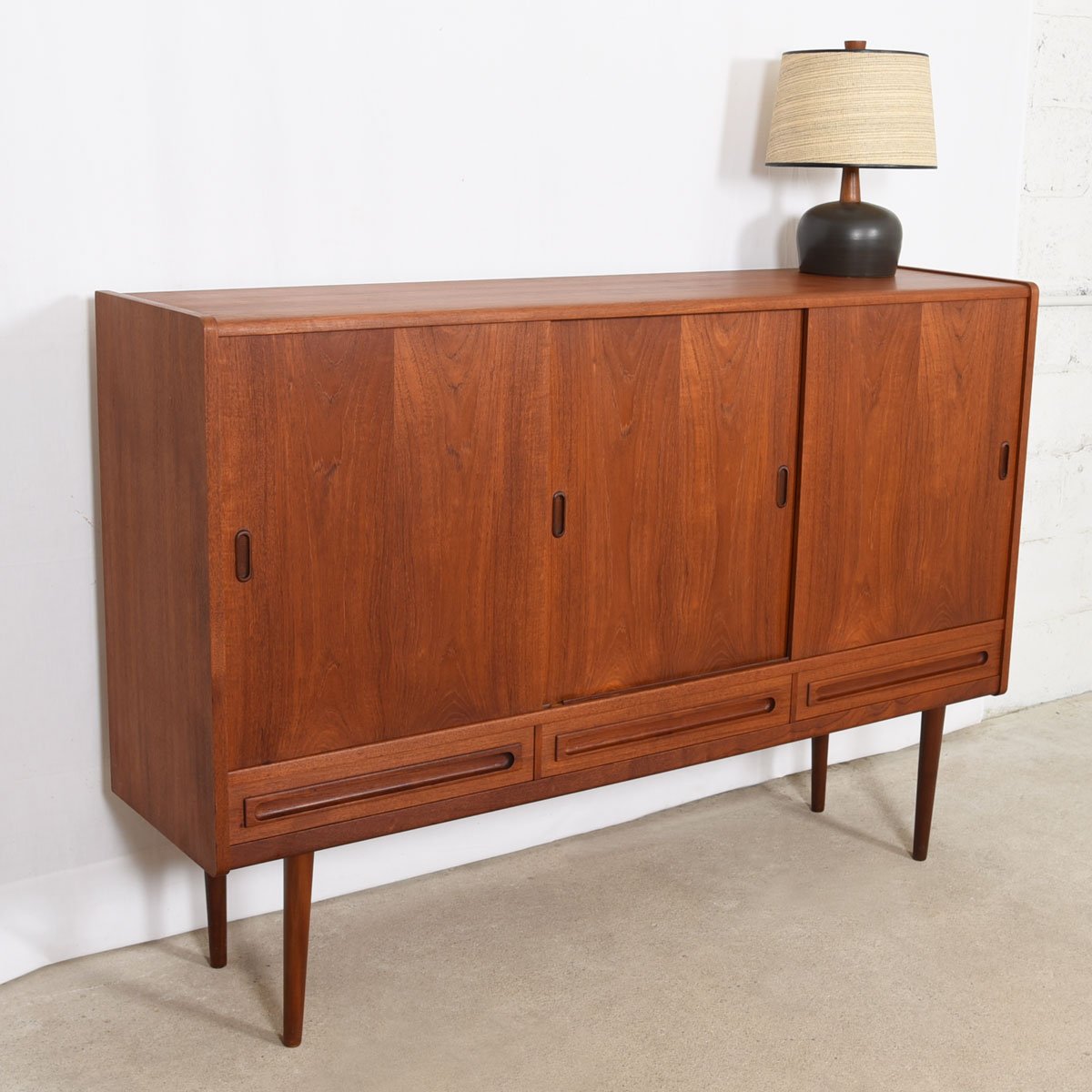 Thin Danish Modern Teak Highboard / Bar Cabinet