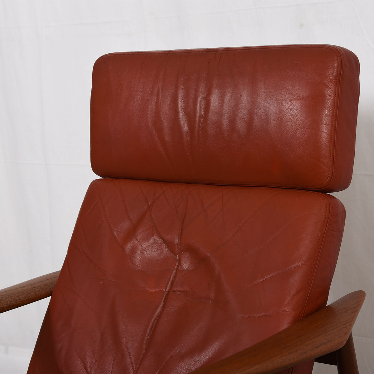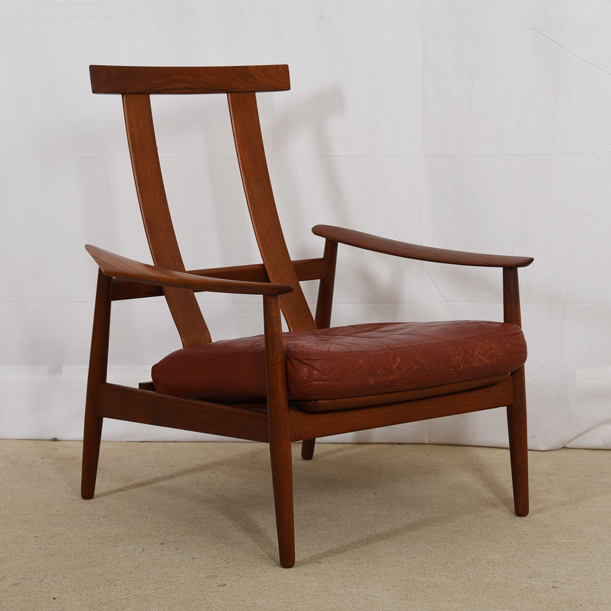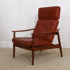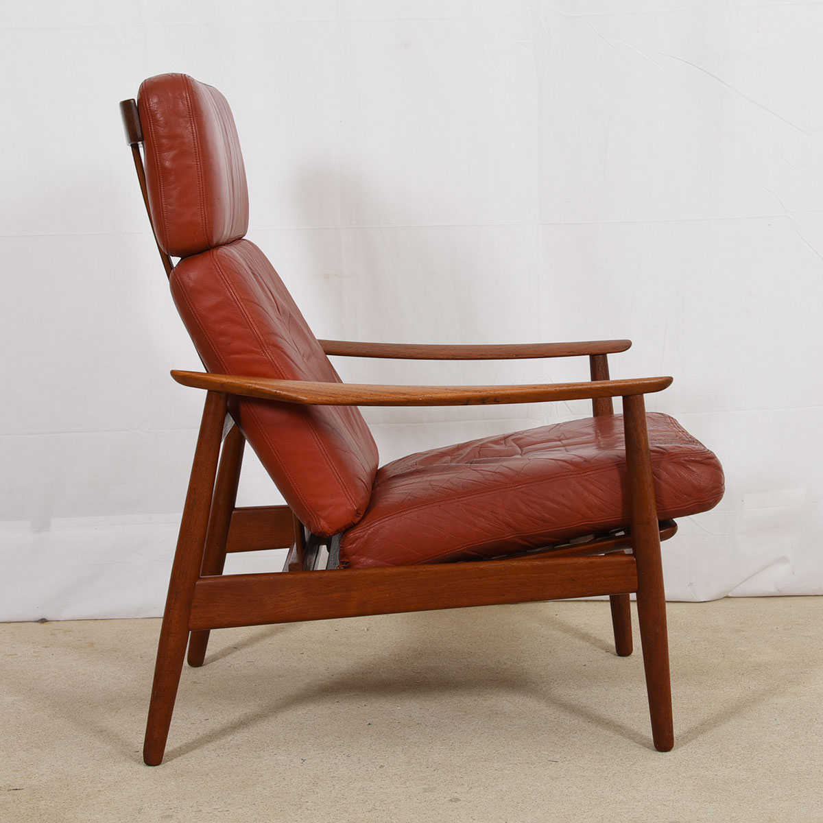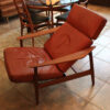 Arne Vodder Danish Teak Adjustable Lounge Chair w/ ‘Blood Orange’ Leather Cushion