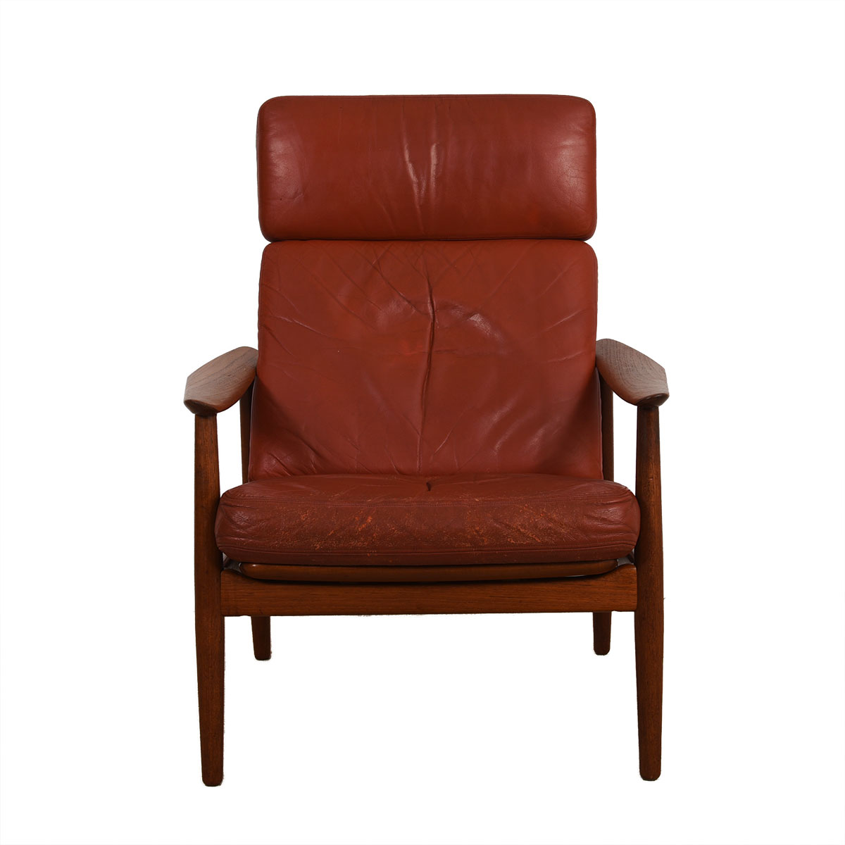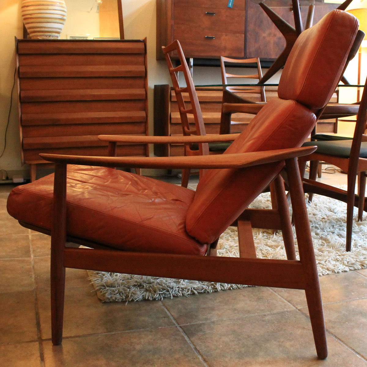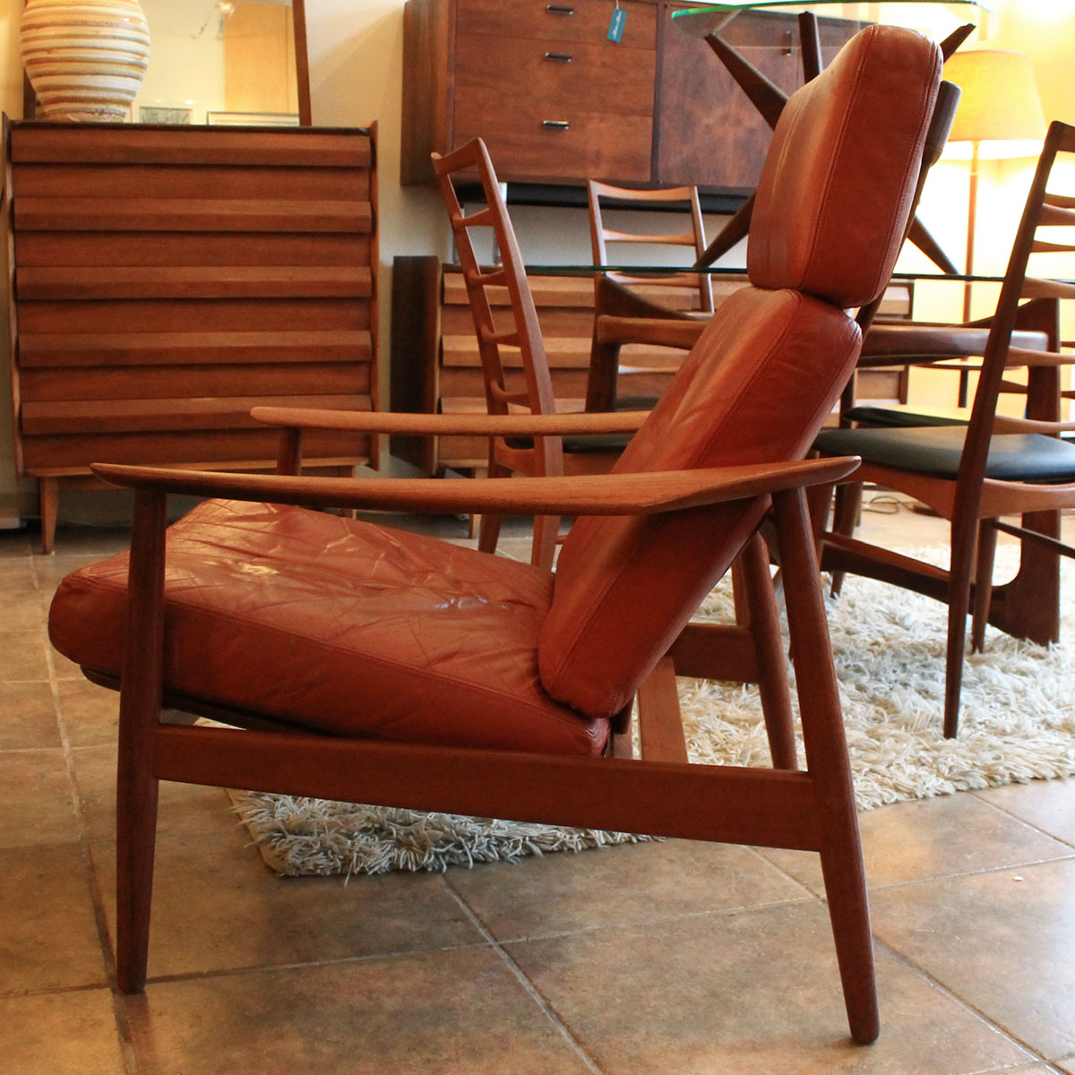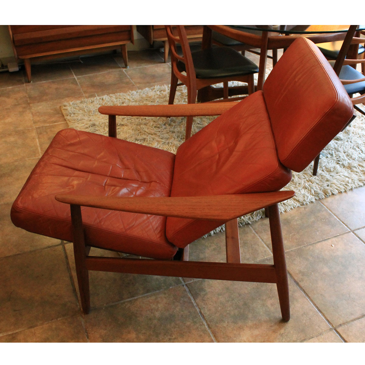 Arne Vodder Danish Teak Adjustable Lounge Chair w/ ‘Blood Orange’ Leather Cushion