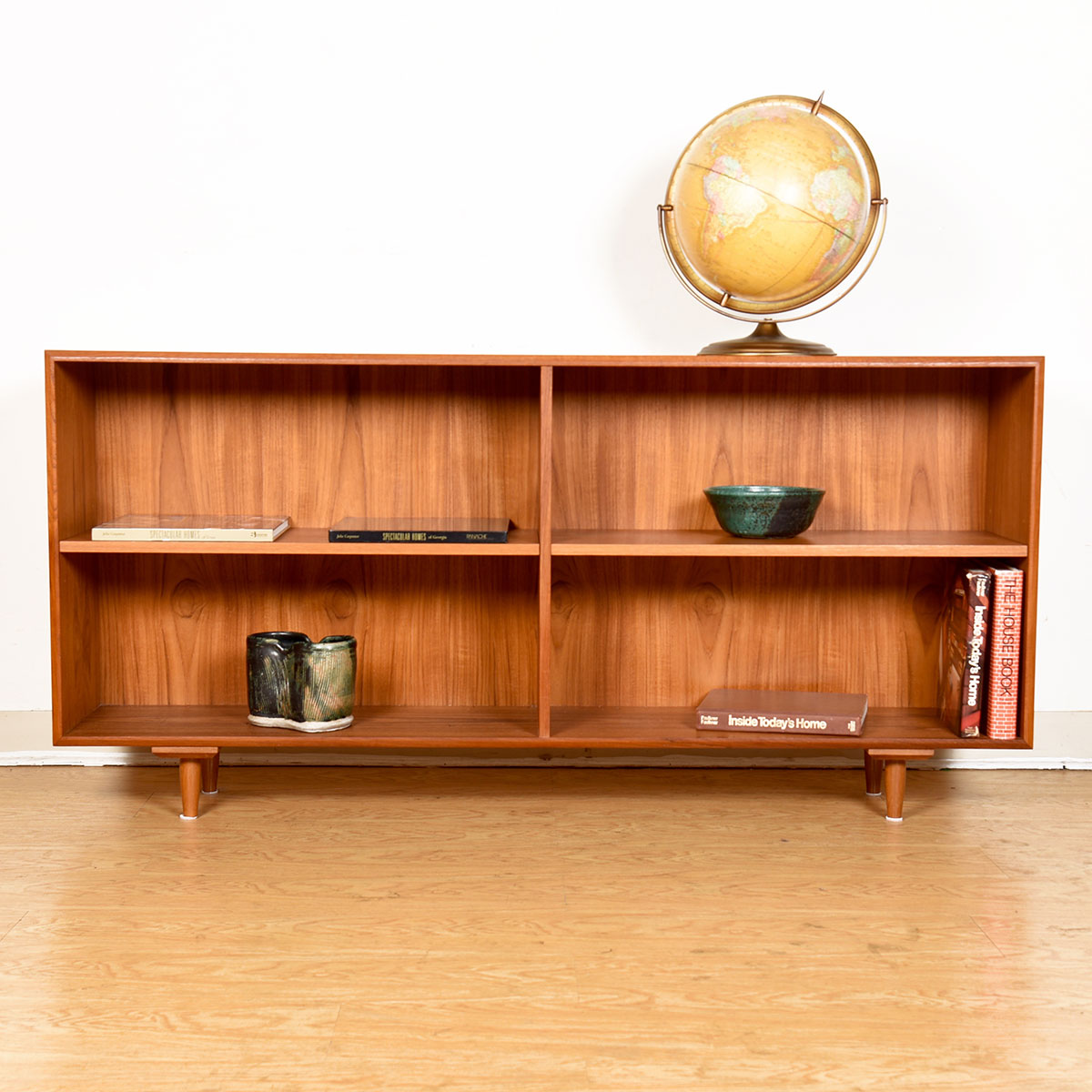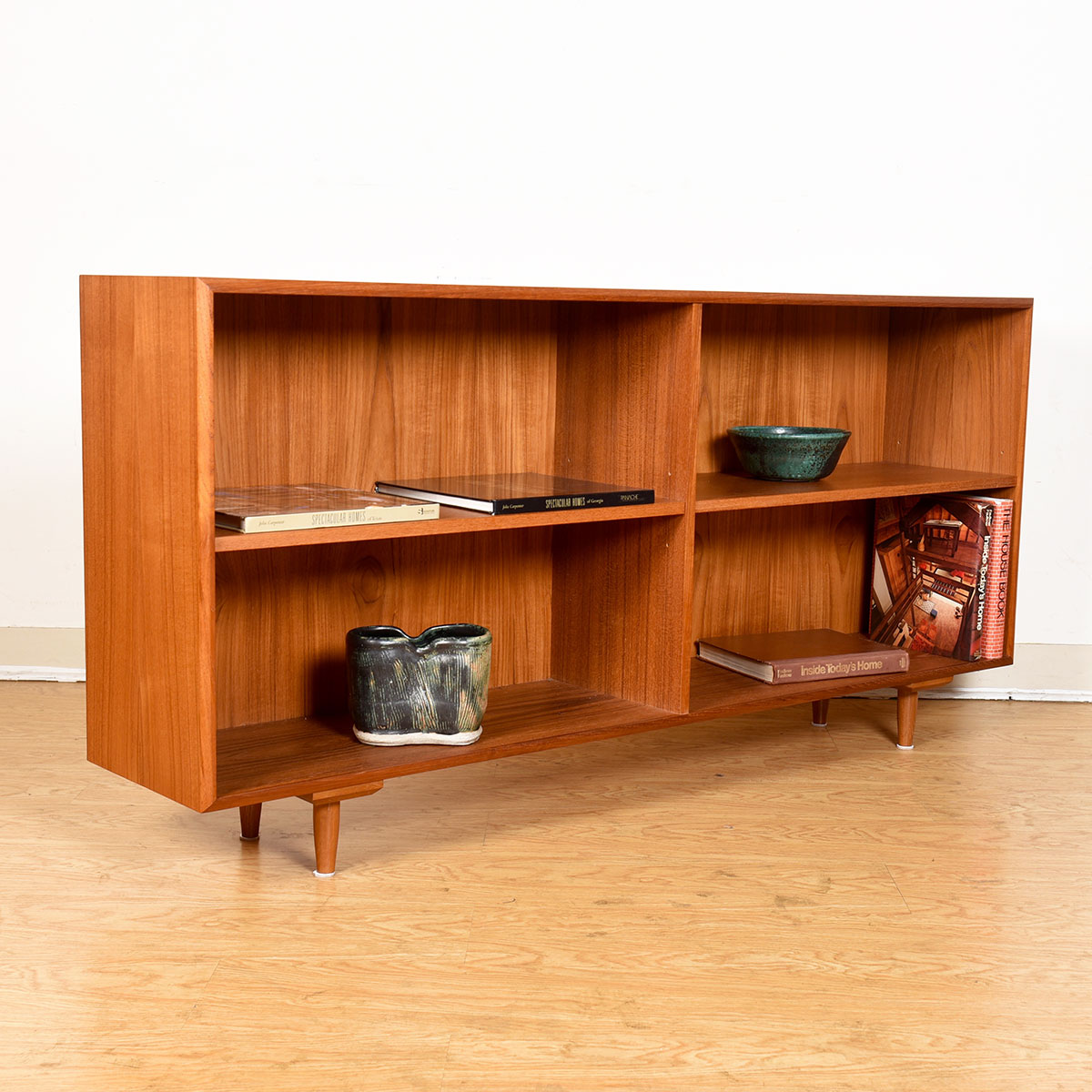 Danish Modern Teak Open Media Cabinet | Low Bookcase