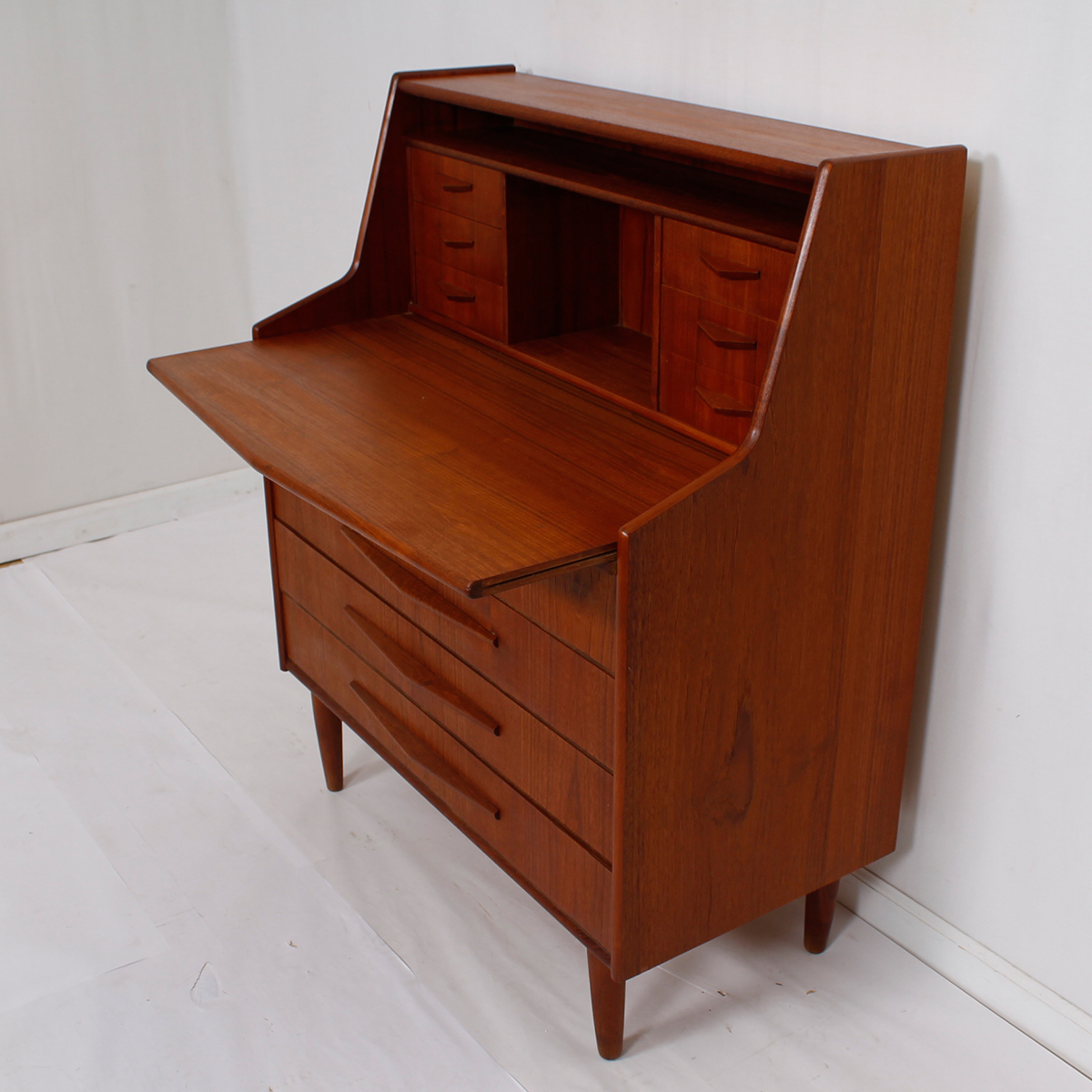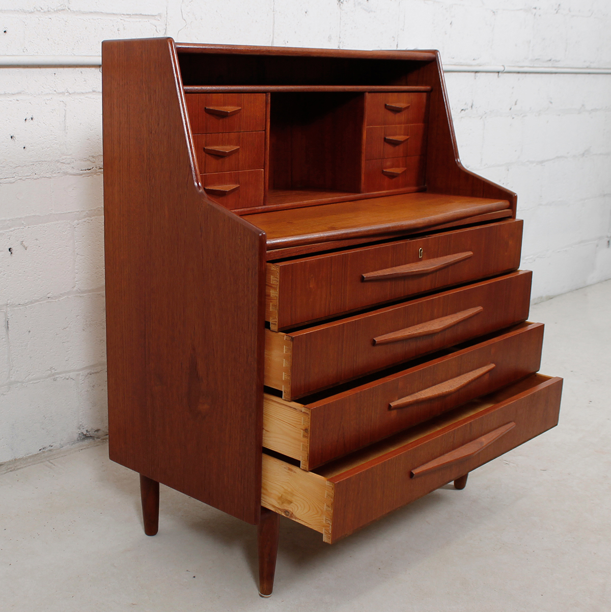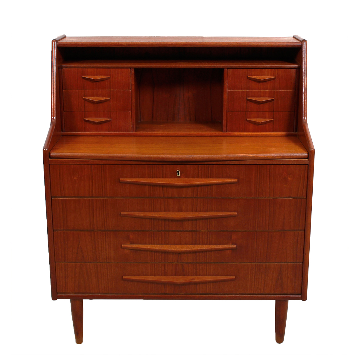 Randers Danish Modern Teak Compact Secretary / Desk with ‘Pontiac’ Pulls