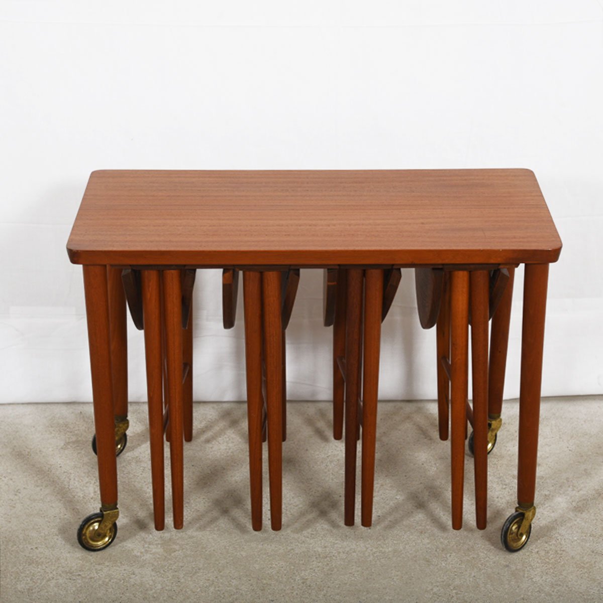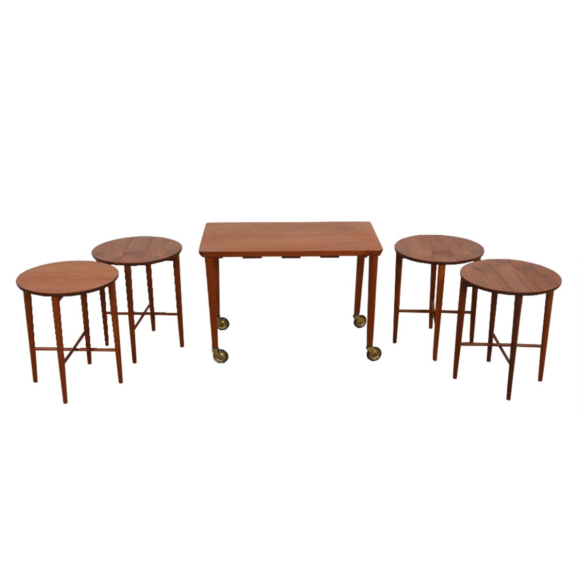 » » » Danish Modern Teak Rolling Cart w/ Nesting Drop leaf Accent Tables