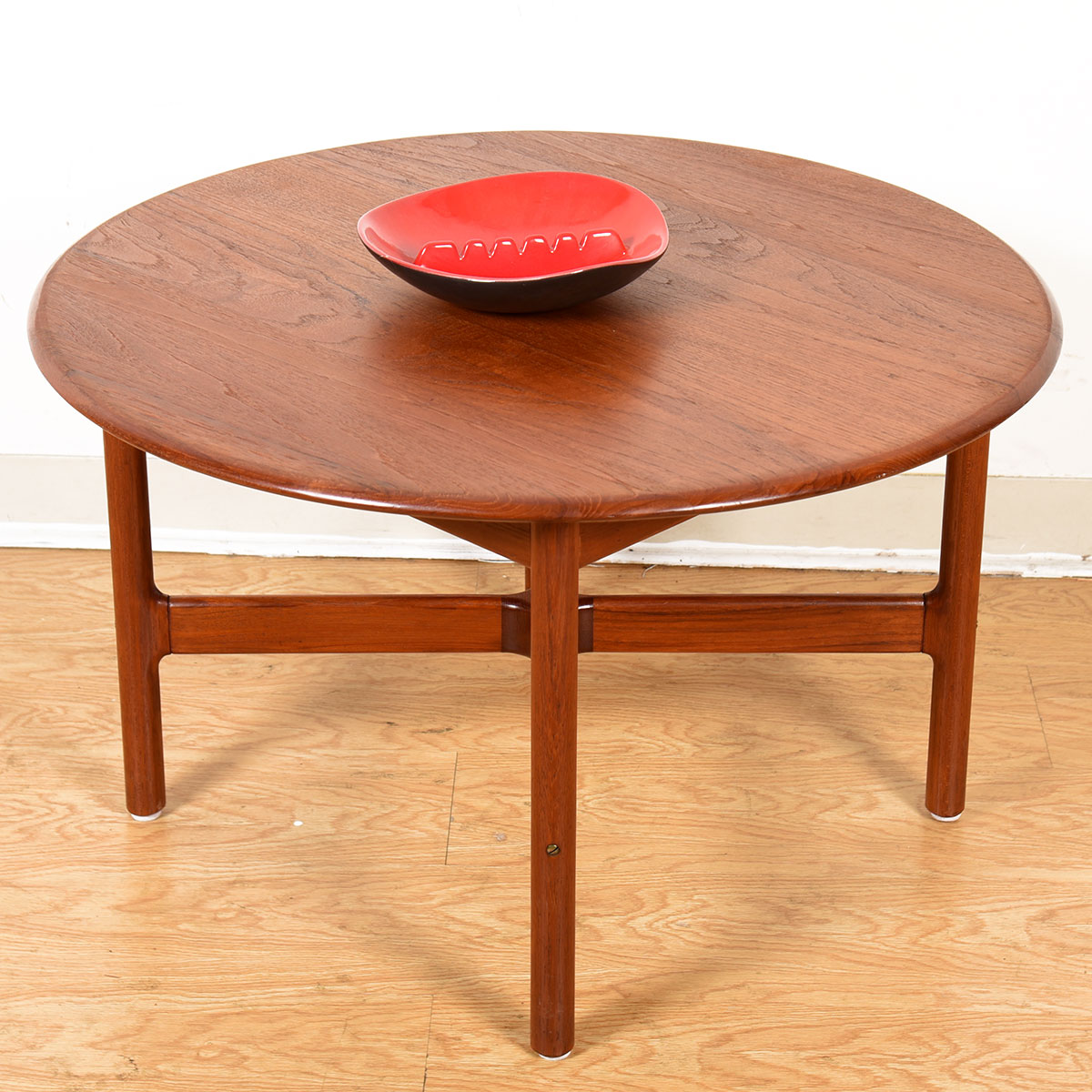 To arrange purchase or for more information about the Danish Modern Teak Round Compact Coffee Table with X-Base please call us at 202.882.1648 or email us at info@modernmobler.com