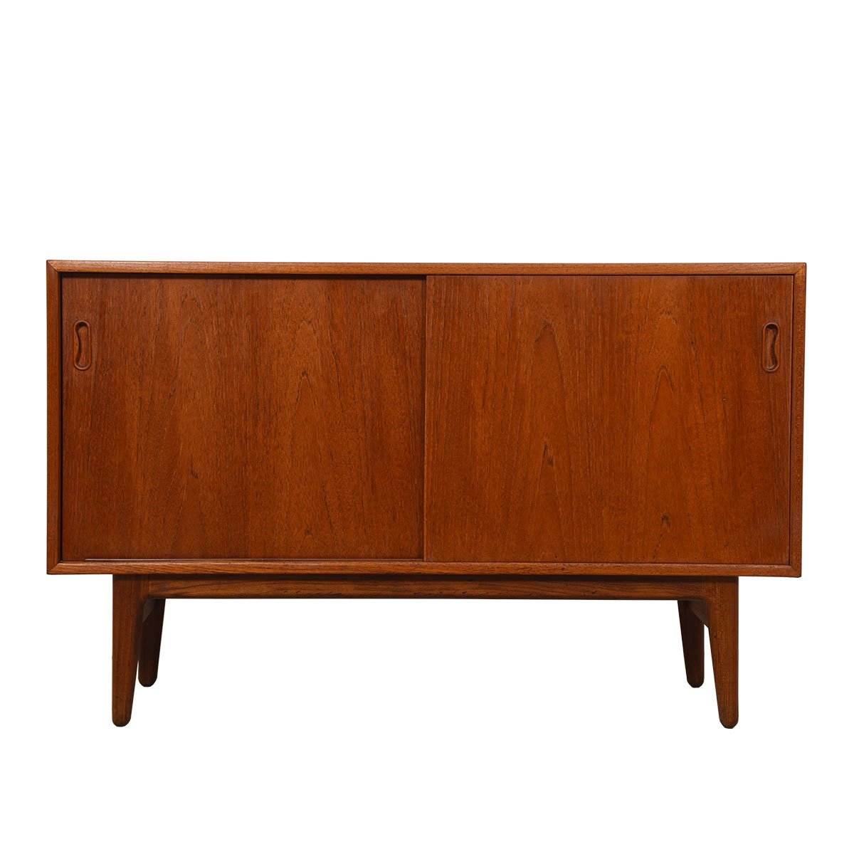 Petite 47″ Danish Modern Teak Sliding Door Cabinet