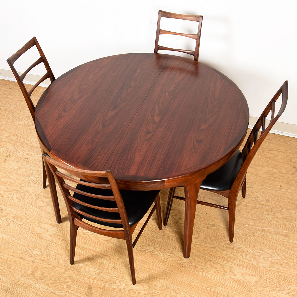To arrange purchase or for more information about the Danish Rosewood Expanding Round Dining Table w: 2 Generously Sized Leaves please call us at 202.882.1648 or email us at info@modernmobler.com