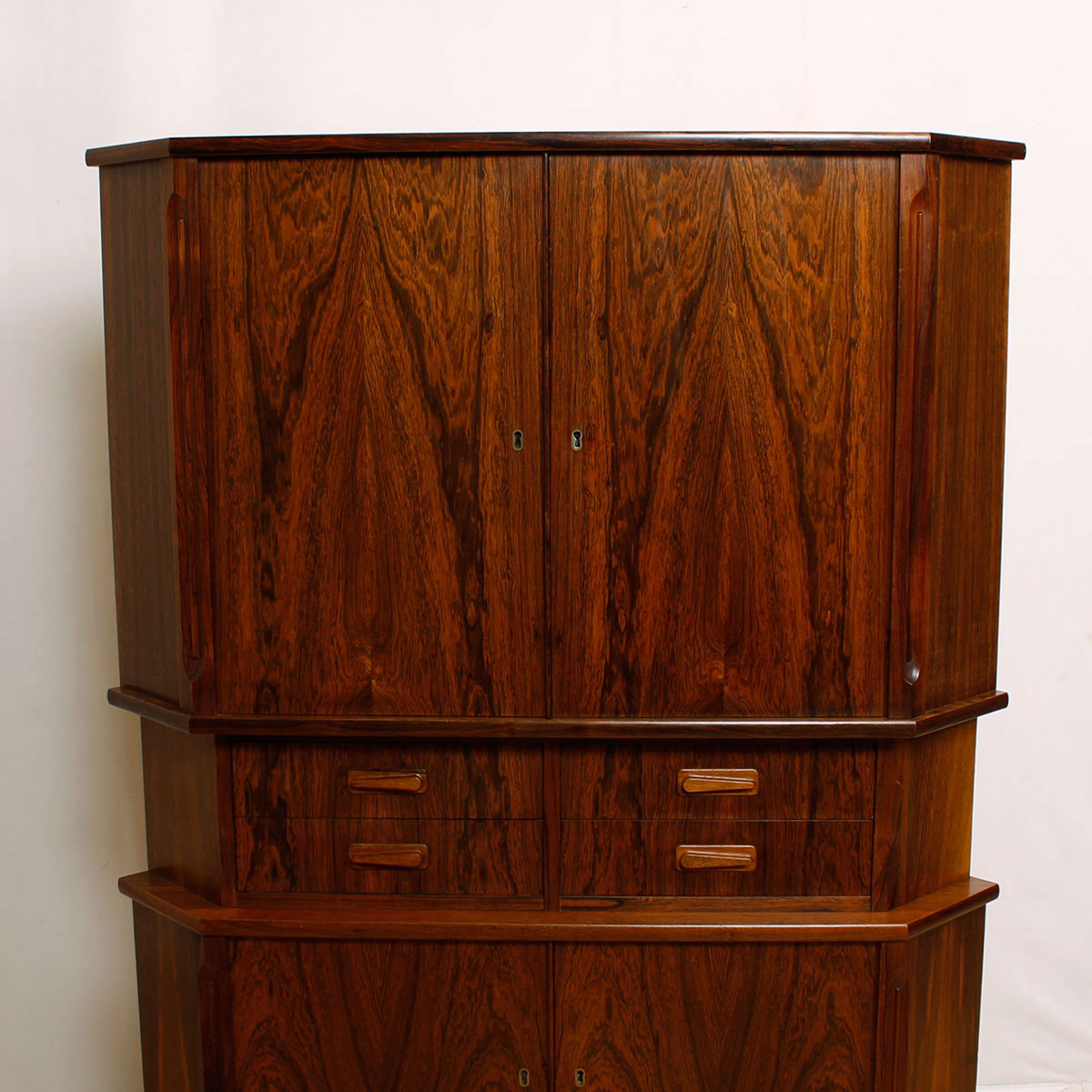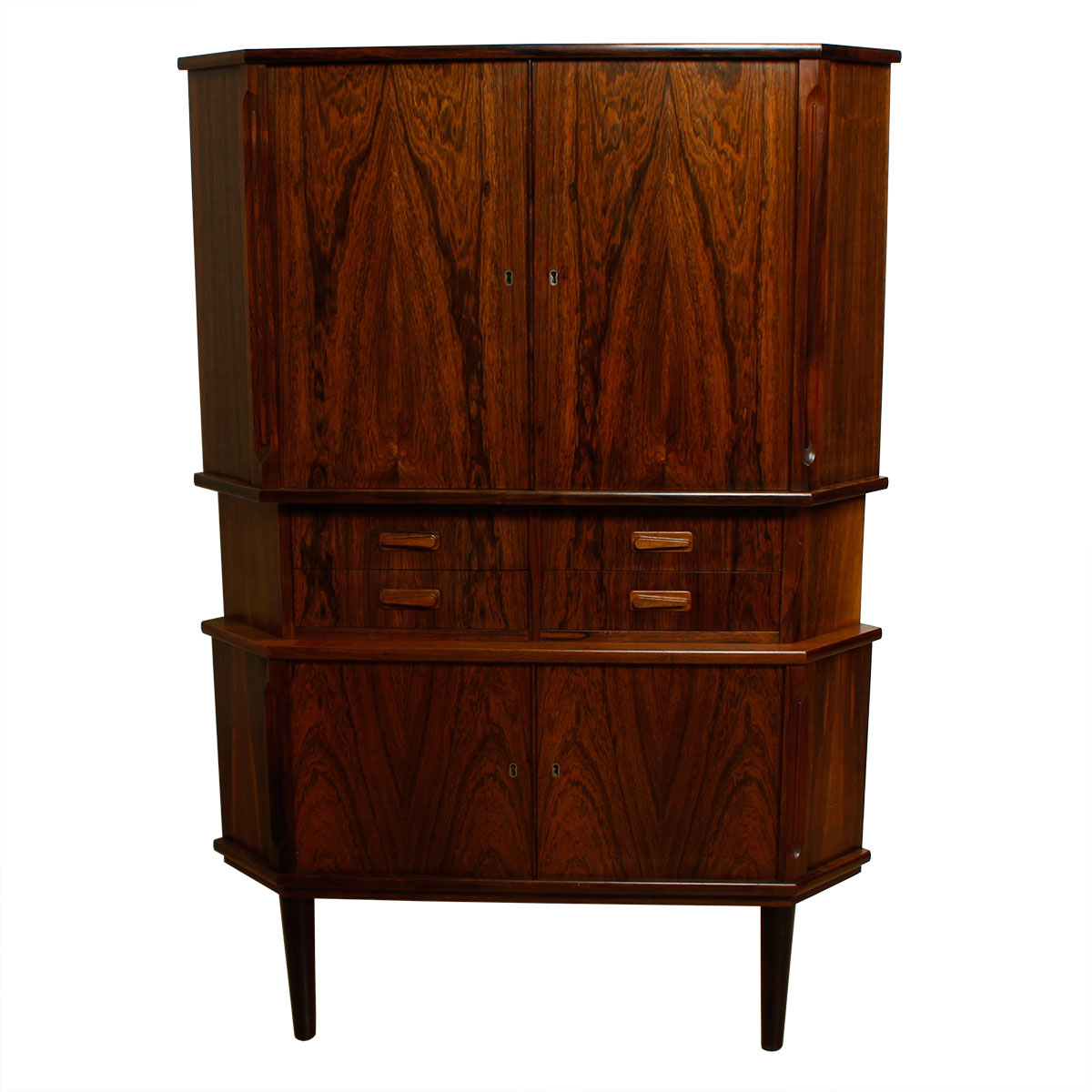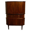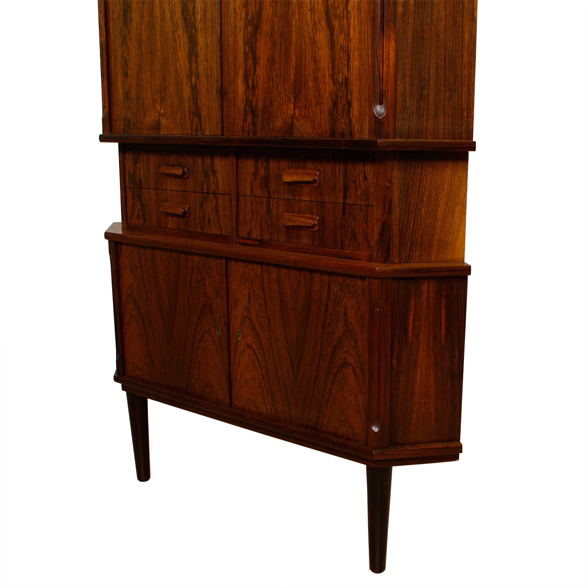 Danish Rosewood Locking Door Corner Bar Cabinet w/ Drawers